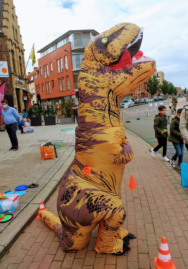 Maandag 31/08 was de eerste dag van de week maar tevens de laatste van de maand augustus. De laatste dag van de vakantie dus. Daarom dat Opstap de straat liet afzetten voor een springkasteel en ander leuks waarmee het jonge volk zich nog eens kon uitleven. Eva was één van de vrijwilligers en hielp waar ze kon.