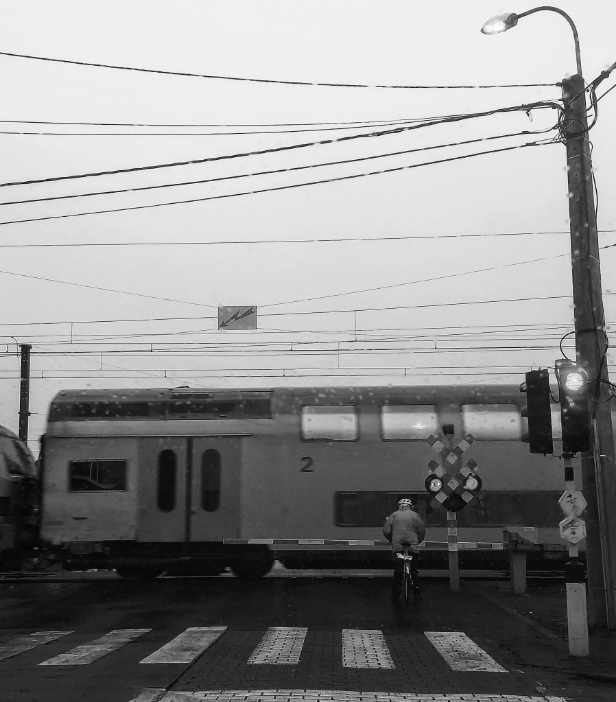 Spoorwegovergangen. Je moet er ontzag voor hebben. Die treinen zijn moordenaars. En even remmen is er niet bij. Dus blijf op afstand, wacht tot alle lichten en bellen of toeters stoppen en ga dan pas over die rails heen. En kijk voordien nog even goed links en rechts of er niks aankomt…. Regen is vervelend. Eens! Maar ach, de lente lonkt alweer….