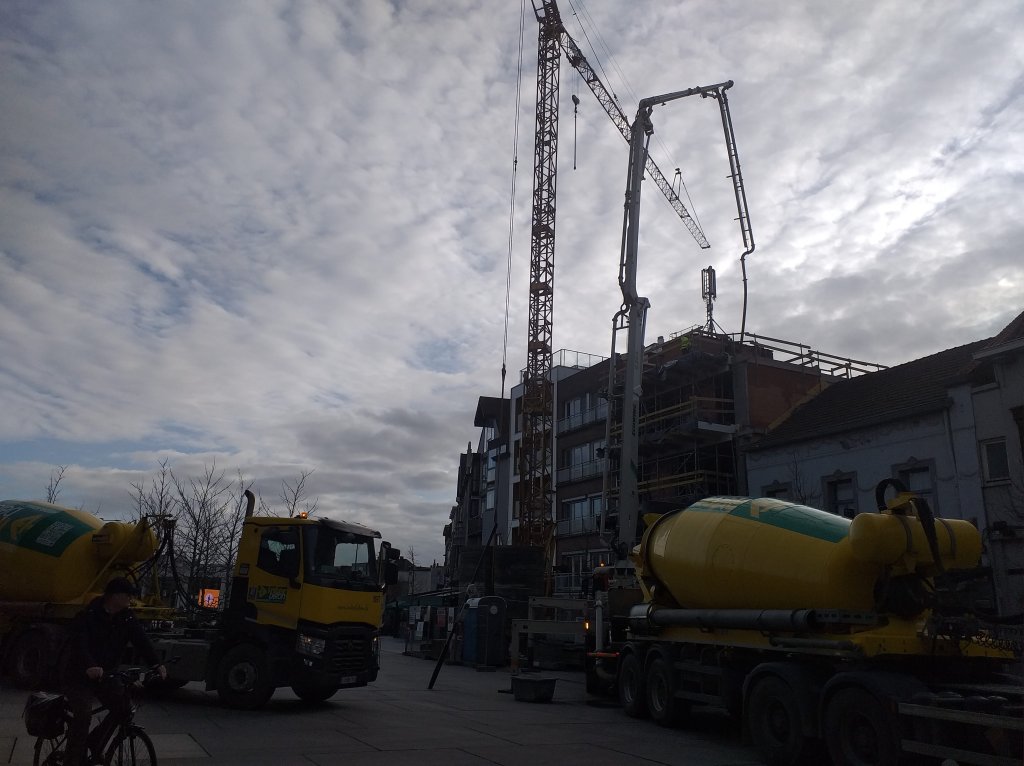 Hier zou die bouwkraan in de regen staan. Allee, dat is goed voor ons grondwater.