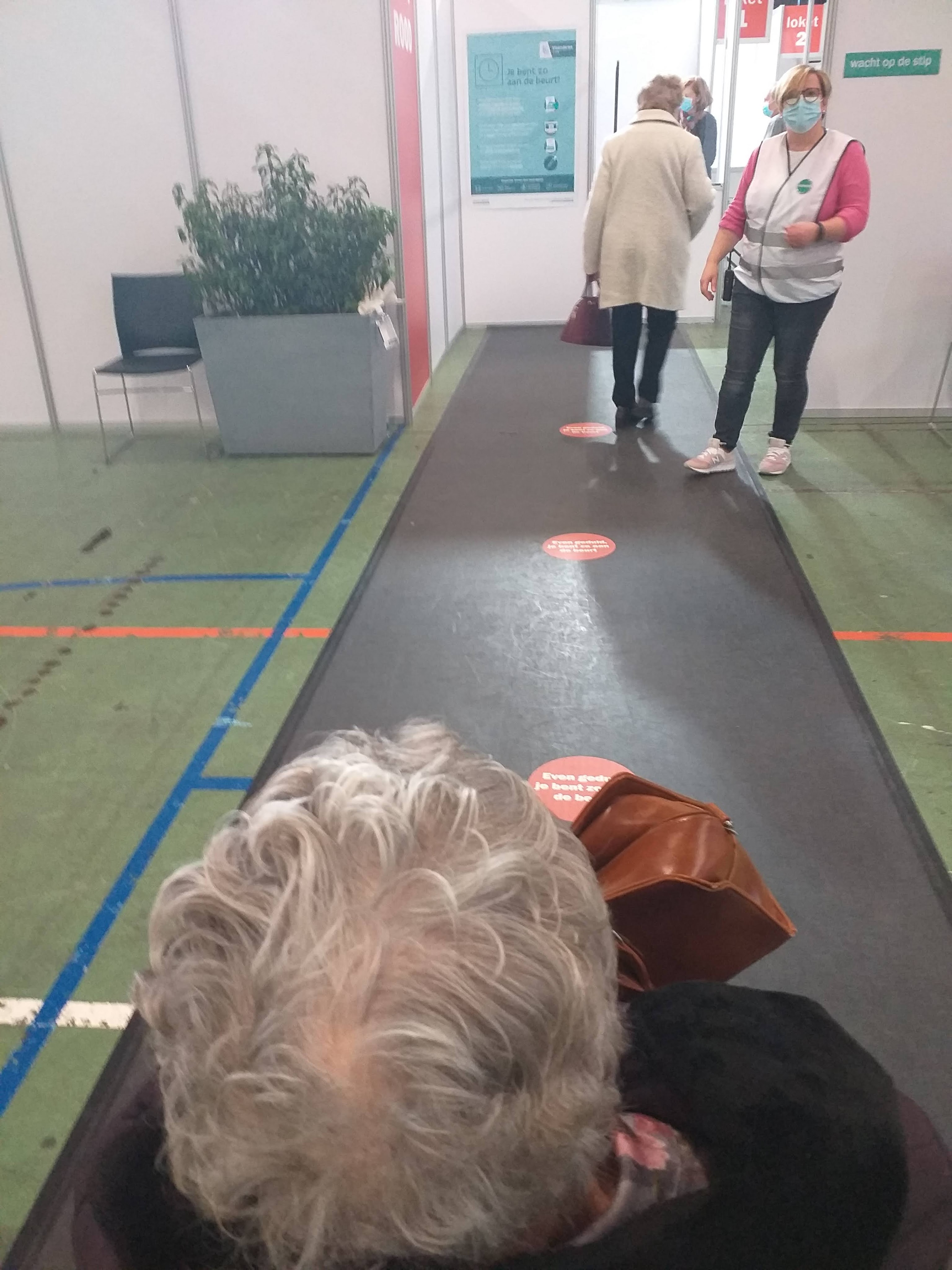 Vlugger dan verwacht kwam een man haar halen. Zij was aan de beurt. Tegen dat ze goed en wel haar arm ontbloot had was de prik al gezet. Ze had niets gevoeld.