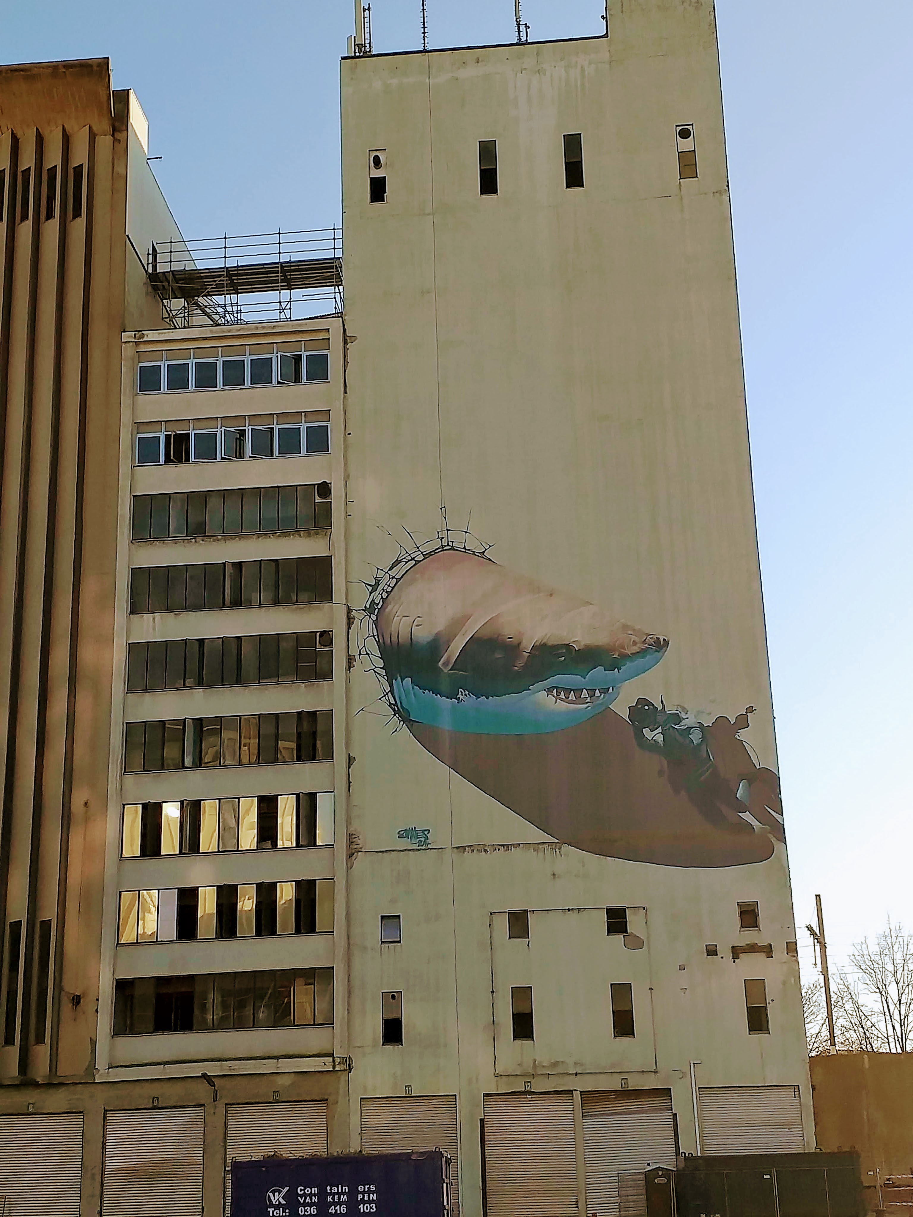 Mooie muurschildering. Dat gebouw blijft toch staan?