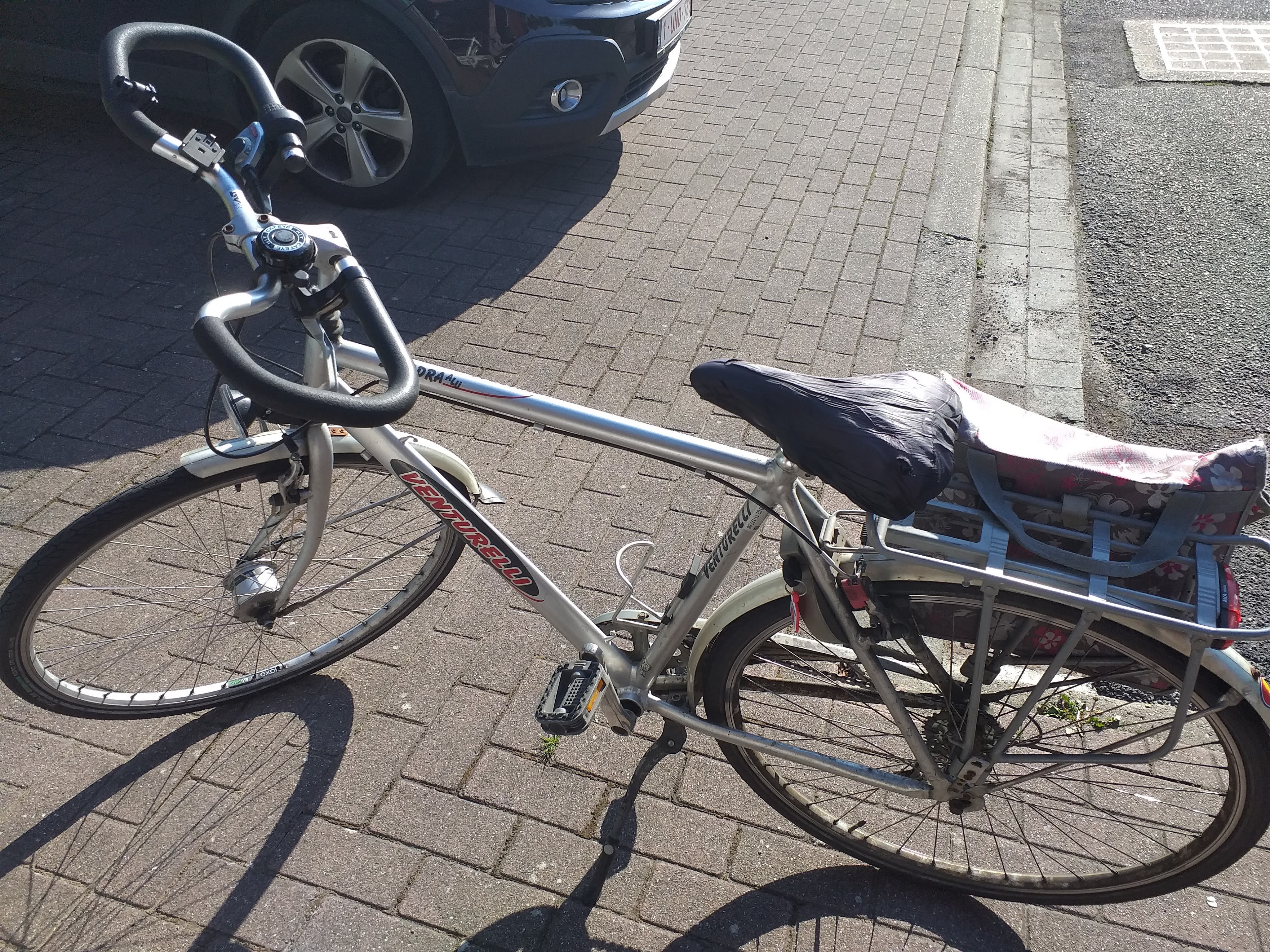 Een beetje later was ik terug bij moeder met de boodschappen. Ik bleef niet lang want ik wilde tenslotte ook nog eens in mij eigen huis vertoeven. Net toen ik neerzat op de bank kreeg ik een sms van de fietsenzaak hier vlakbij dat mijn fiets hersteld is. Het euvel kon ik niet in het Fietspunt laten herstellen, maar die fietsenhersteller kon dan wel, dus….
