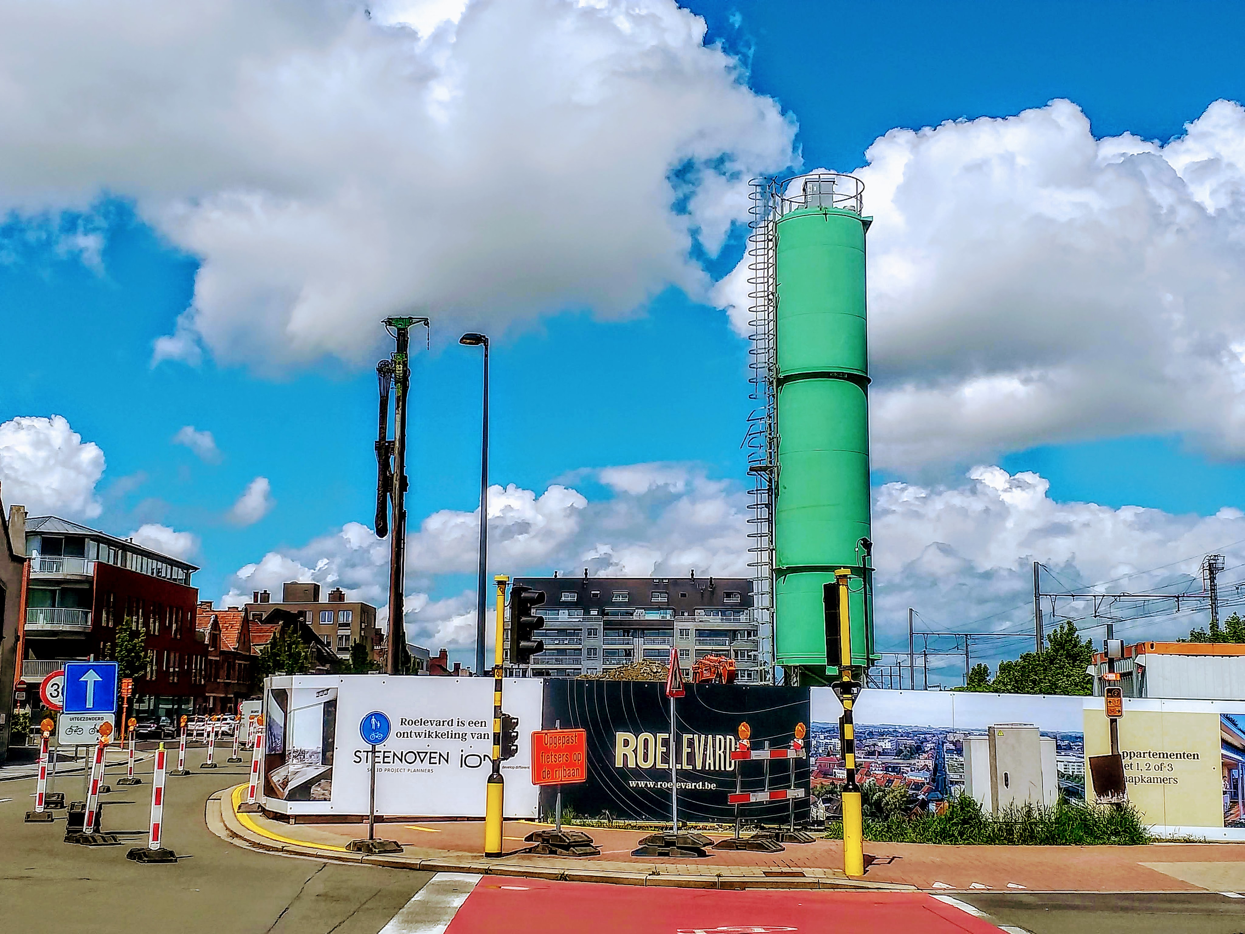 Nu afwachten hoe de werken evolueren. Je zal daar maar aan de overkant van de straat wornen (zie uiterst links op de foto).
