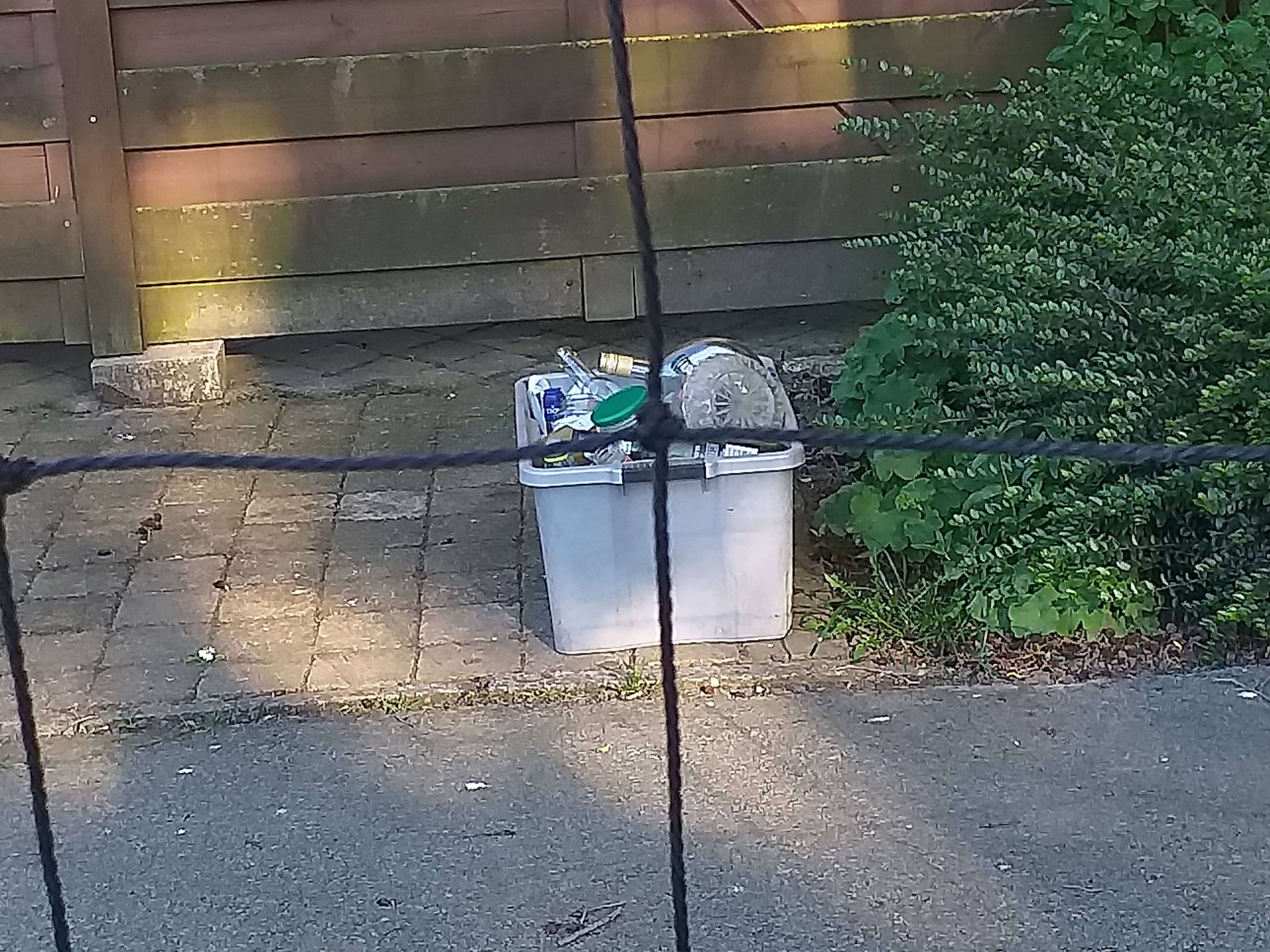 Die krat met glas.. zoiets snap ik niet.. vonden ze het achteraf teveel werk? zaten er teveel dingen in die niet door het gat van de glasbak pasten? tss.. als je de boel dan toch apart houdt, ruim het dan ook echt op hè. Mensen die hun blikjes en flesjes zomaar weggooien waar ze lopen, zijn gewoon lui en asociaal.