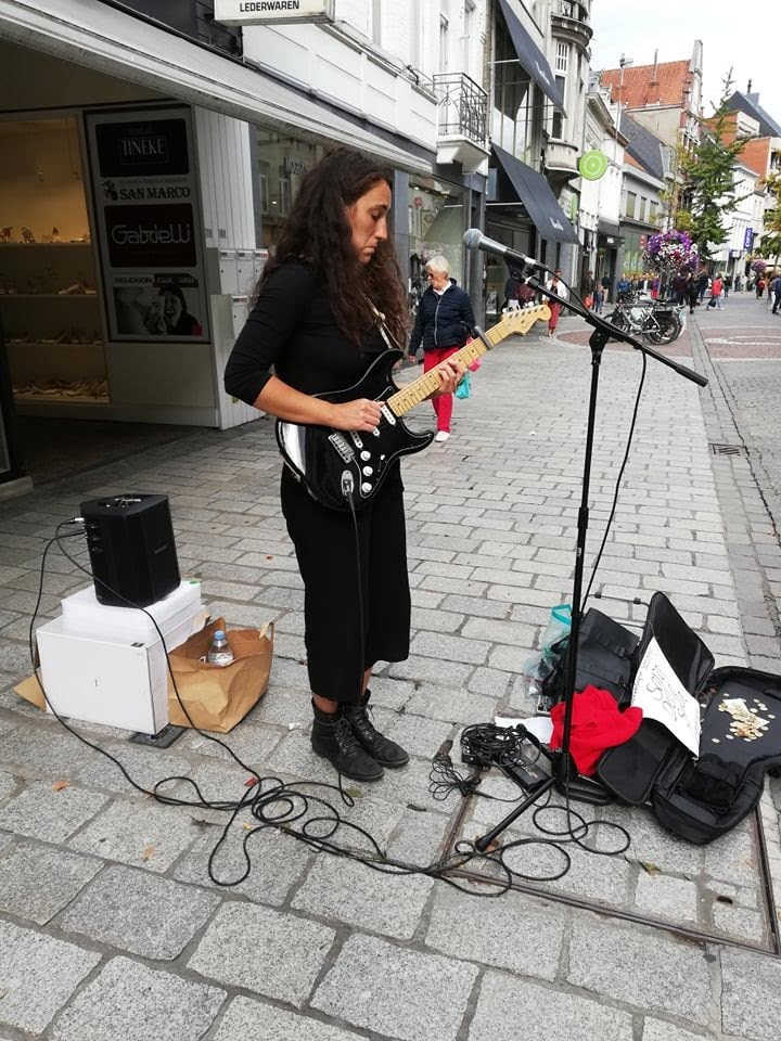 Voor de challenge van satur9 heb ik deze foto van 7 september 2019 uit mijn archief gevist. Straatmuziekant in de Ooststraat, de drukste winkelstraat van Roeselare.