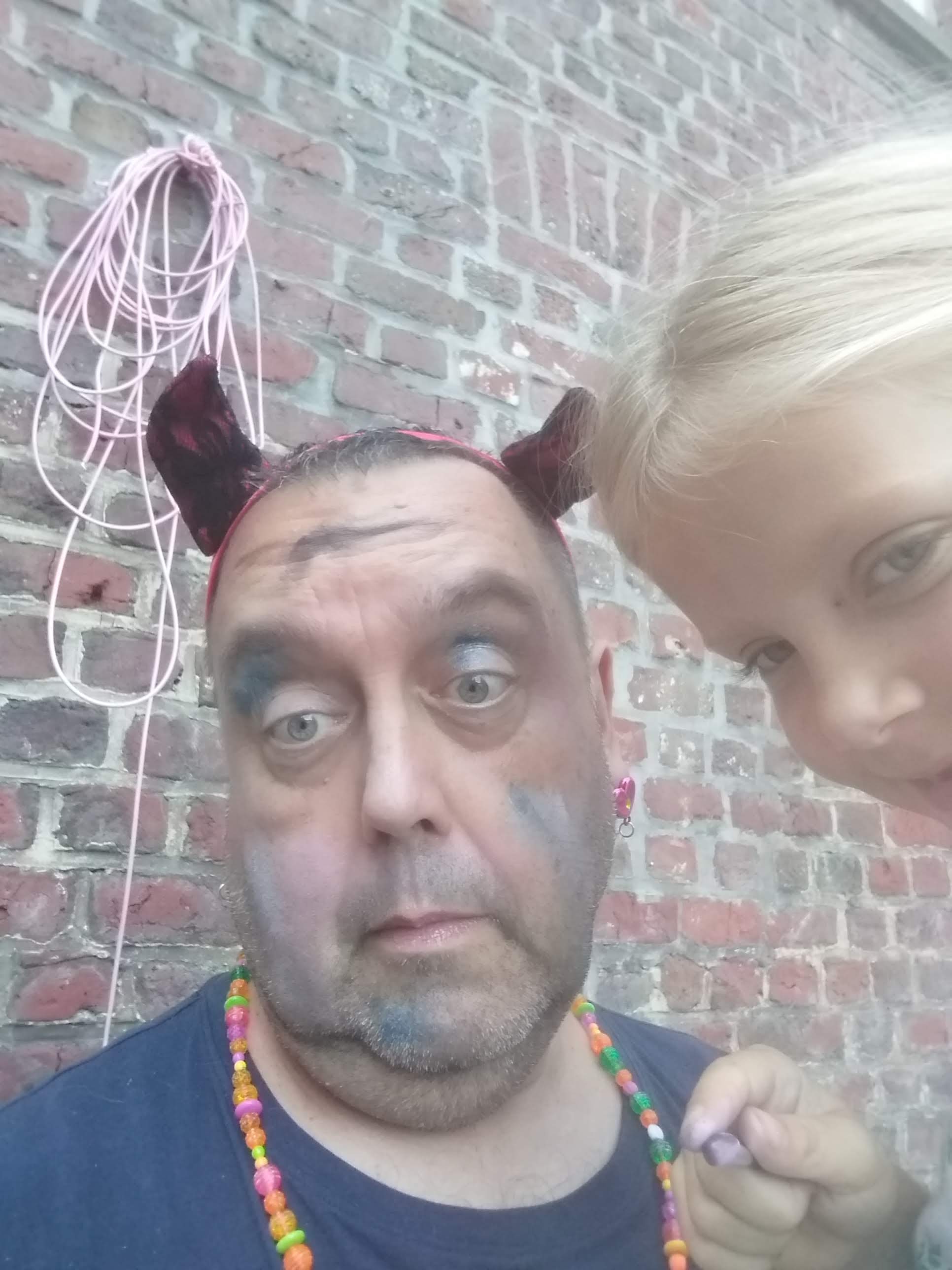 Eén andere dochter (6) kreeg het in haar cute hoofdje om mij eens onder handen te nemen met haar beautysetjes. Hieronder zie je enkele foto’s van het resultaat.