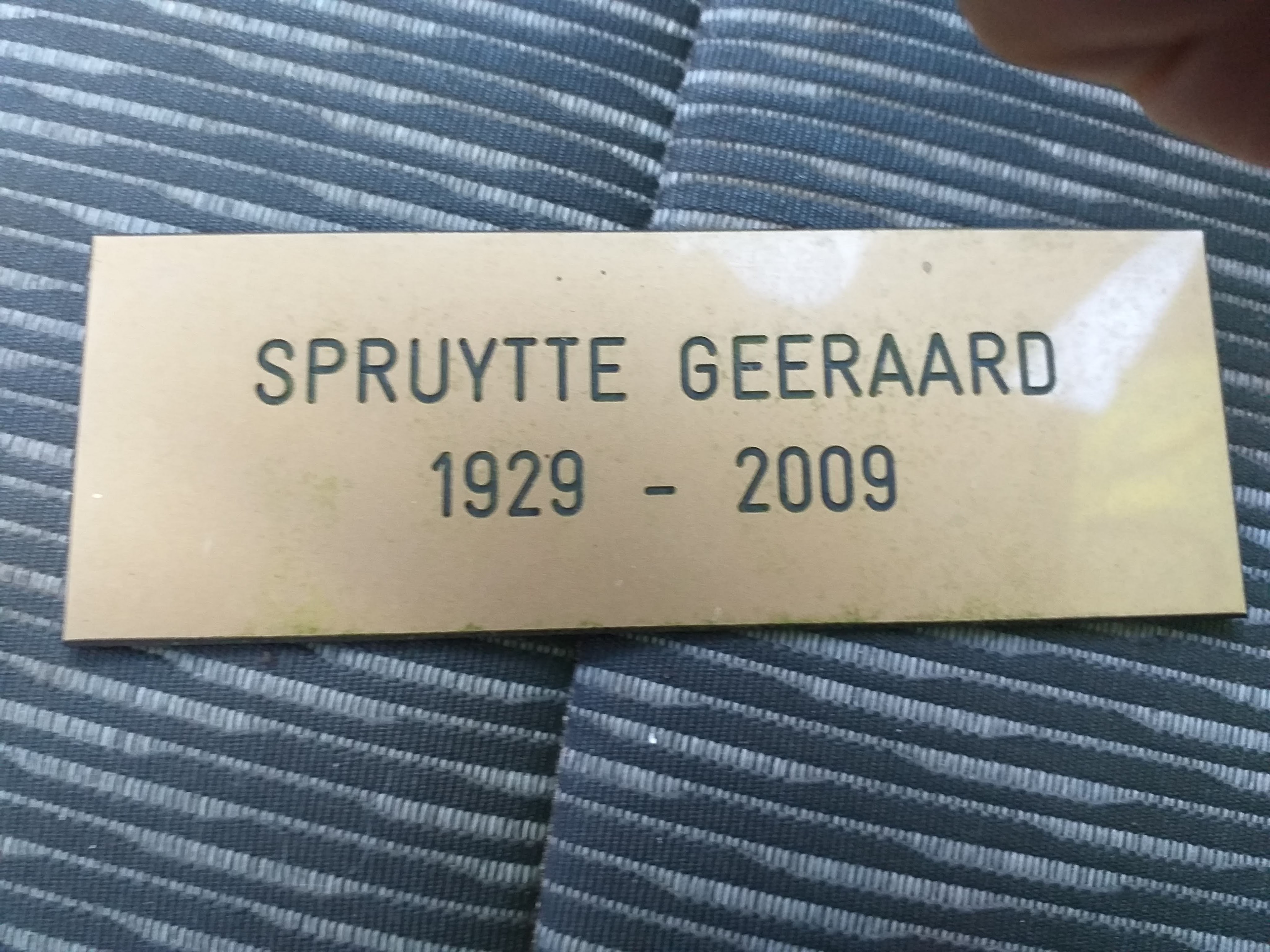 In 2009 stierf mijn vader. Zijn asse werd uitgestrooid op de strooiweide in deelgemeente Rumbeke. Op een zuil vlakbij die weide hing men een naamkaartje plus geboortejaar en jaar overlijden.