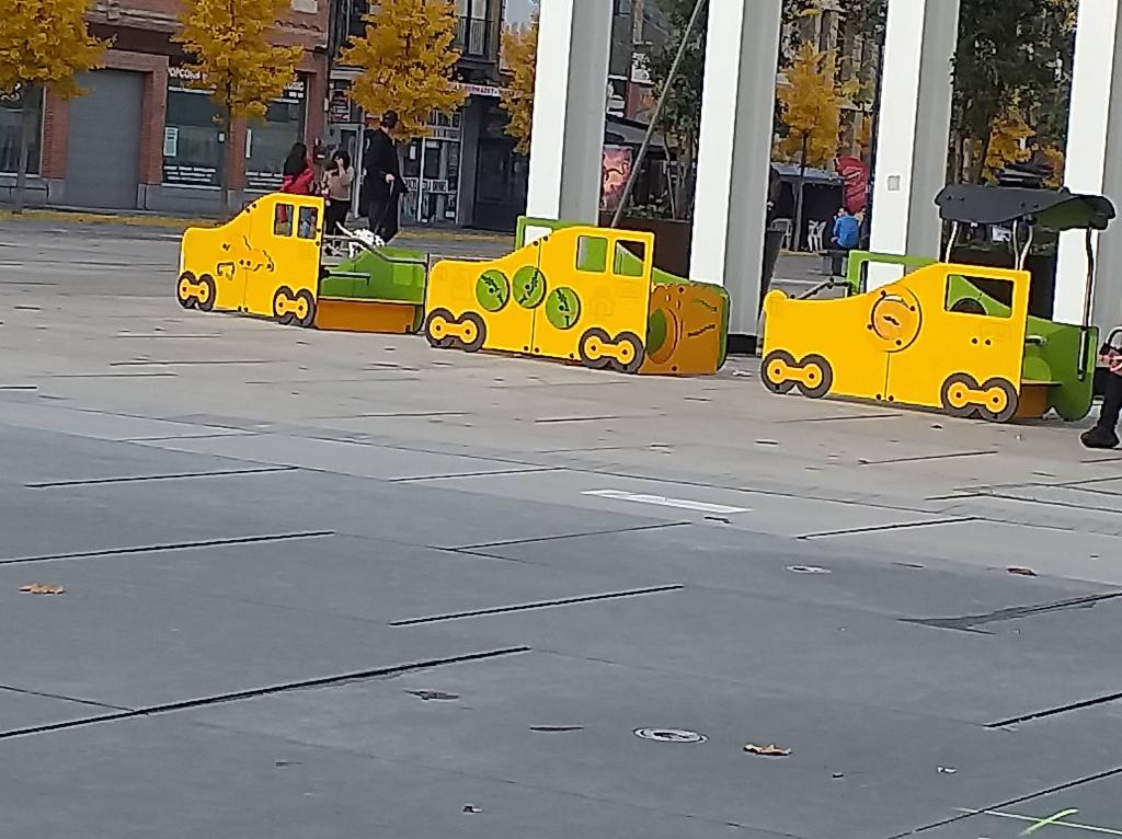 Het ziet er niet naar uit dat déze trein de mensen ergens op tijd zal brengen.. volgens mij doen die wielen niet veel..! 😉