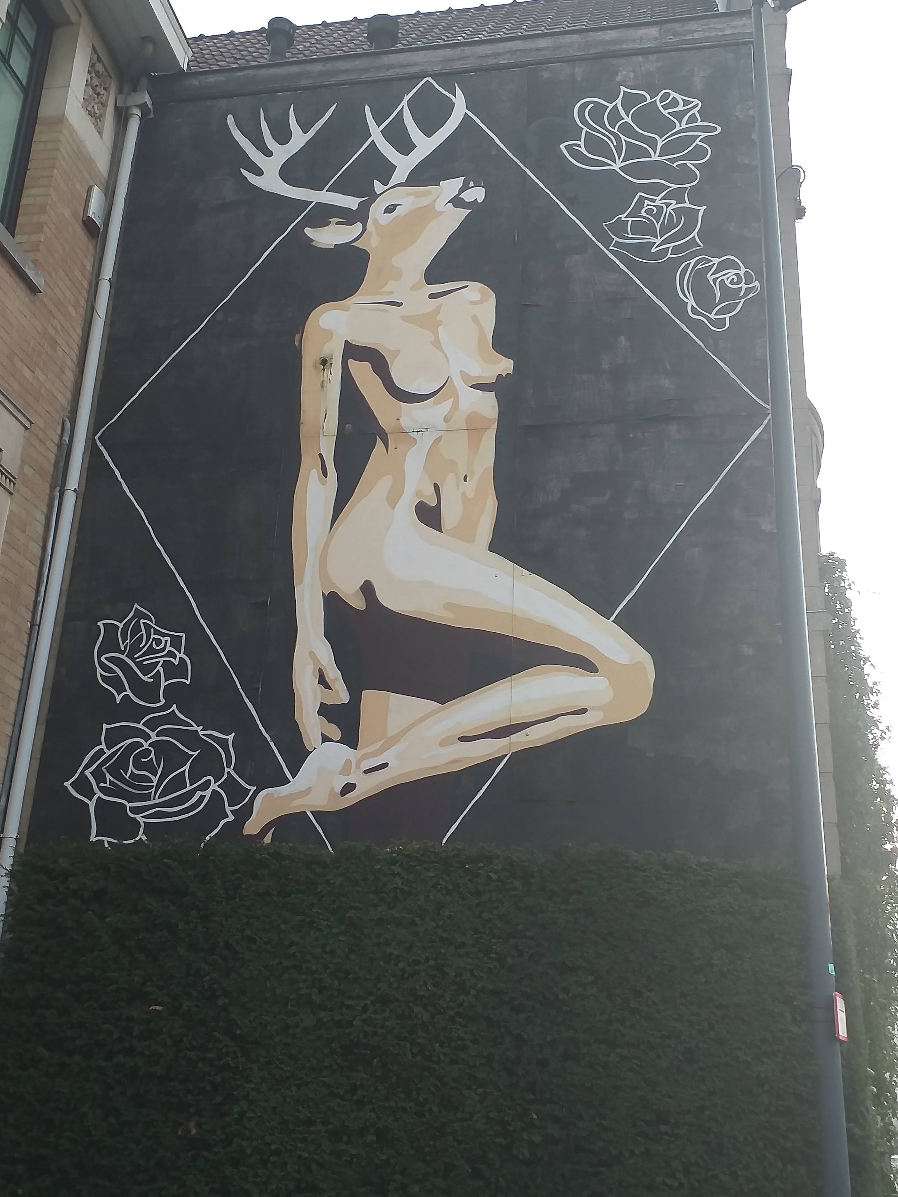 Een mooie dame stond vast model voor dit fraaie kunstwerk. Dat kopje met gewei zal vast iets te betekenen hebben volgens de maker(s), maar wat?? Iets om over na te denken..