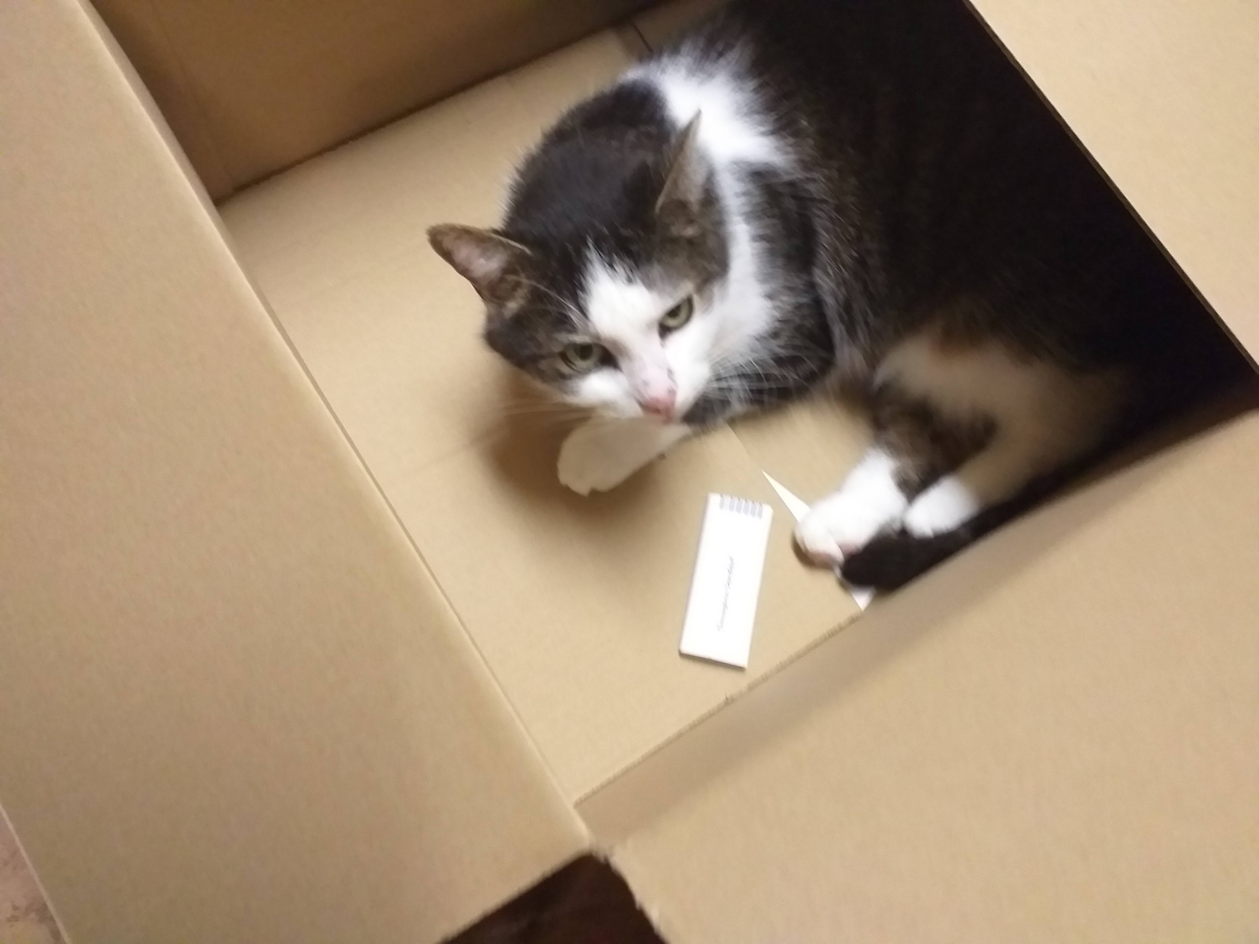 Dat is toch lekker als kat zijnde, je eigen doos waarin je je kan terugtrekken.