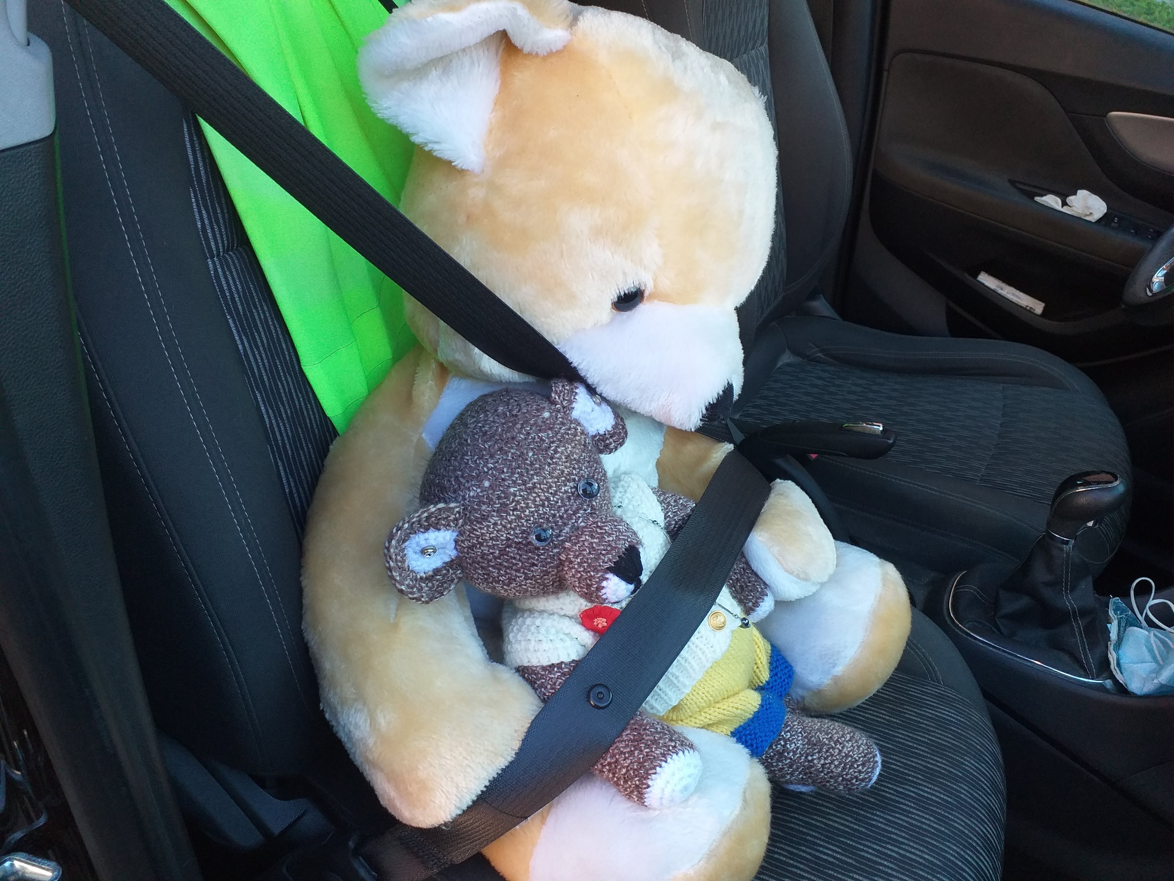 Zaterdag reed ik met deze twee beren naast mij naar de Muizen. Die woonden tot voor kort in het huis van mijn moeder. Grote Muis wou die hebben en dat mocht. Ook hun stoel verhuisde mee.