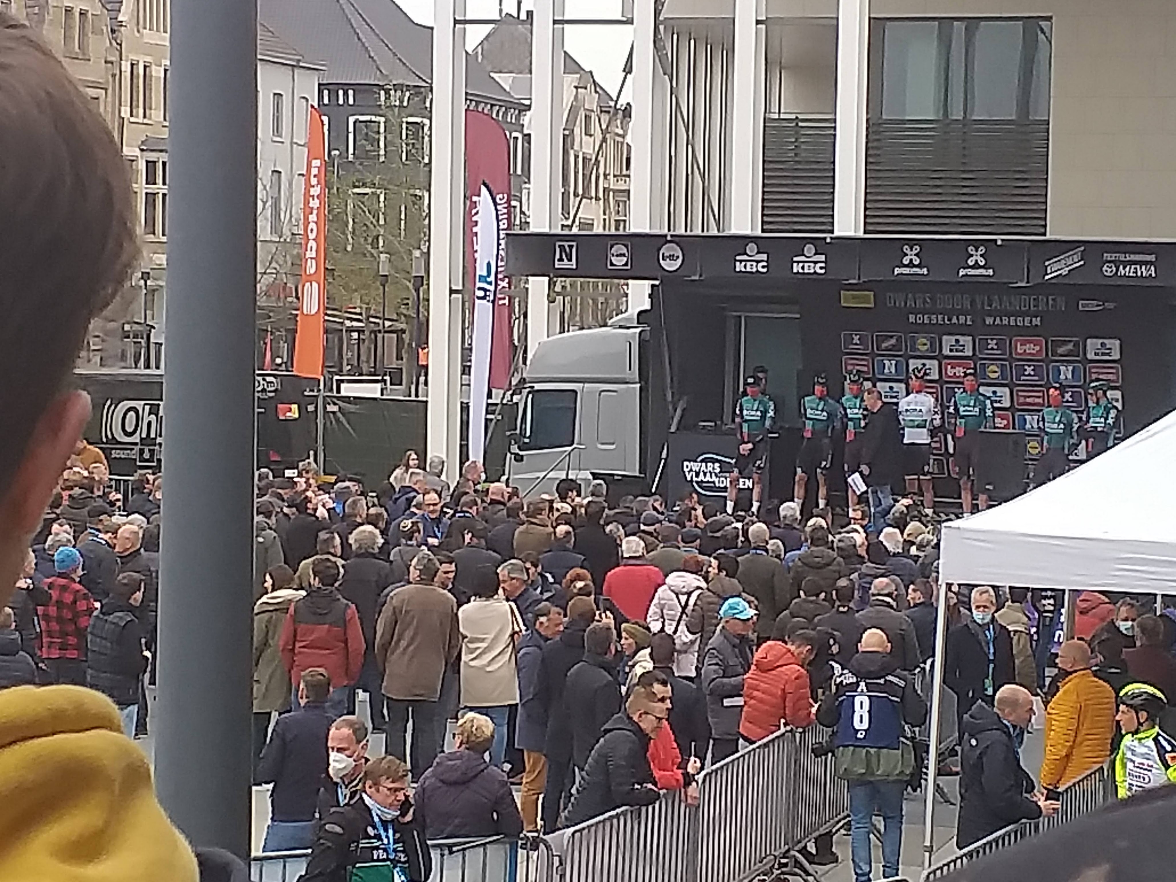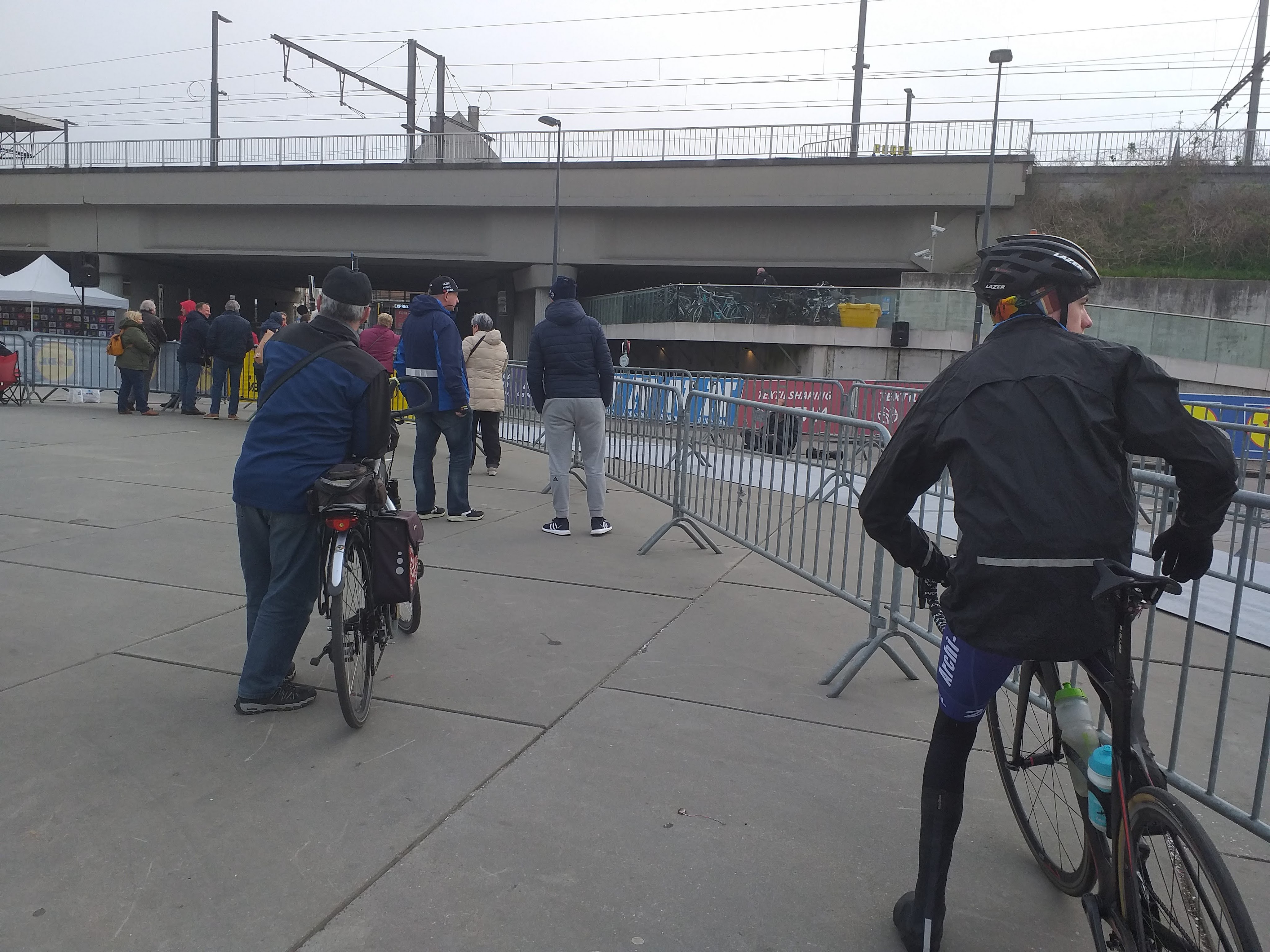 Zo’n wielerkoers brengt een hoop drukte mee. Maar het lijkt me verstandig een beetje afstand van de de drukte houden.
