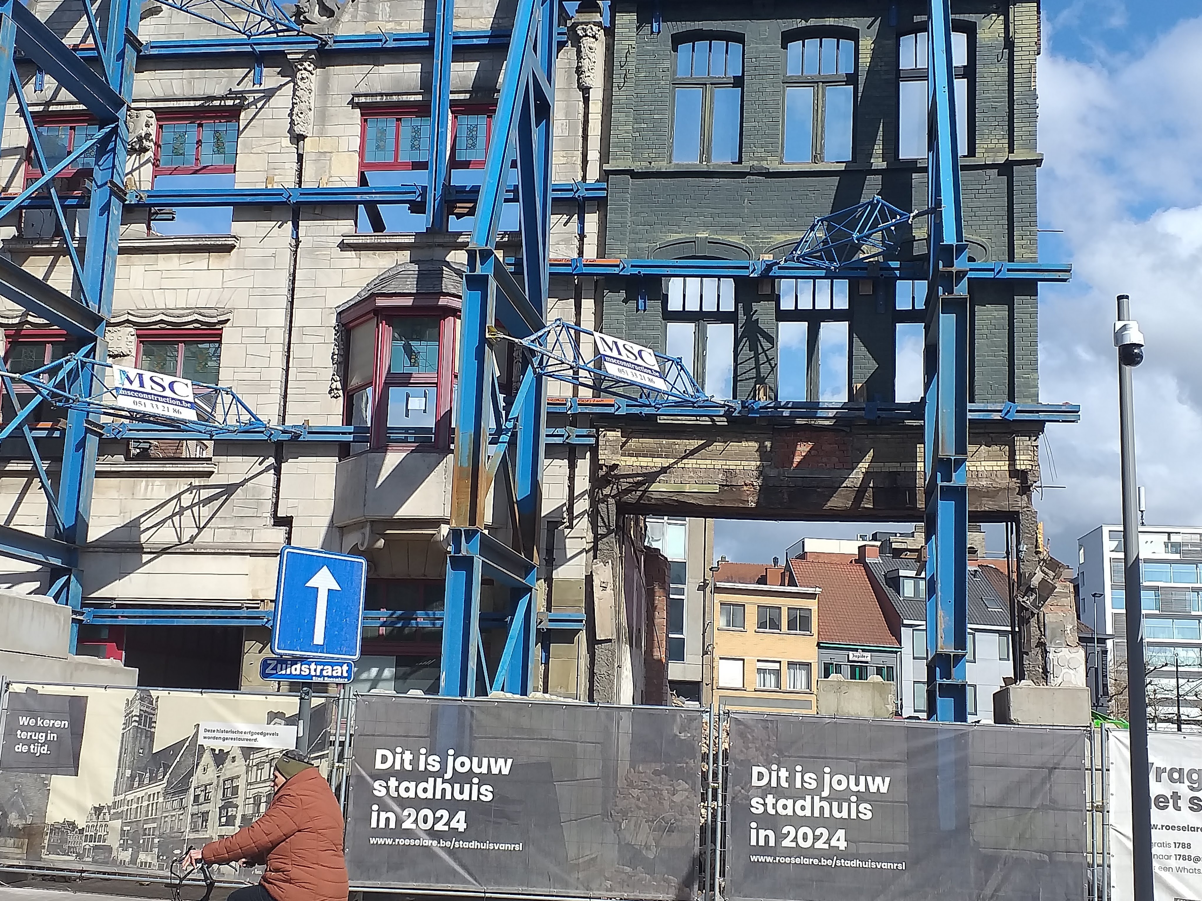 De afbraakwerken moeten nu bijna rond zijn. Deze gevel blijft dus behouden. Ik ben benieuwd wanneer ze aan de opbouw van het nieuwe stadhuis zullen beginnen.