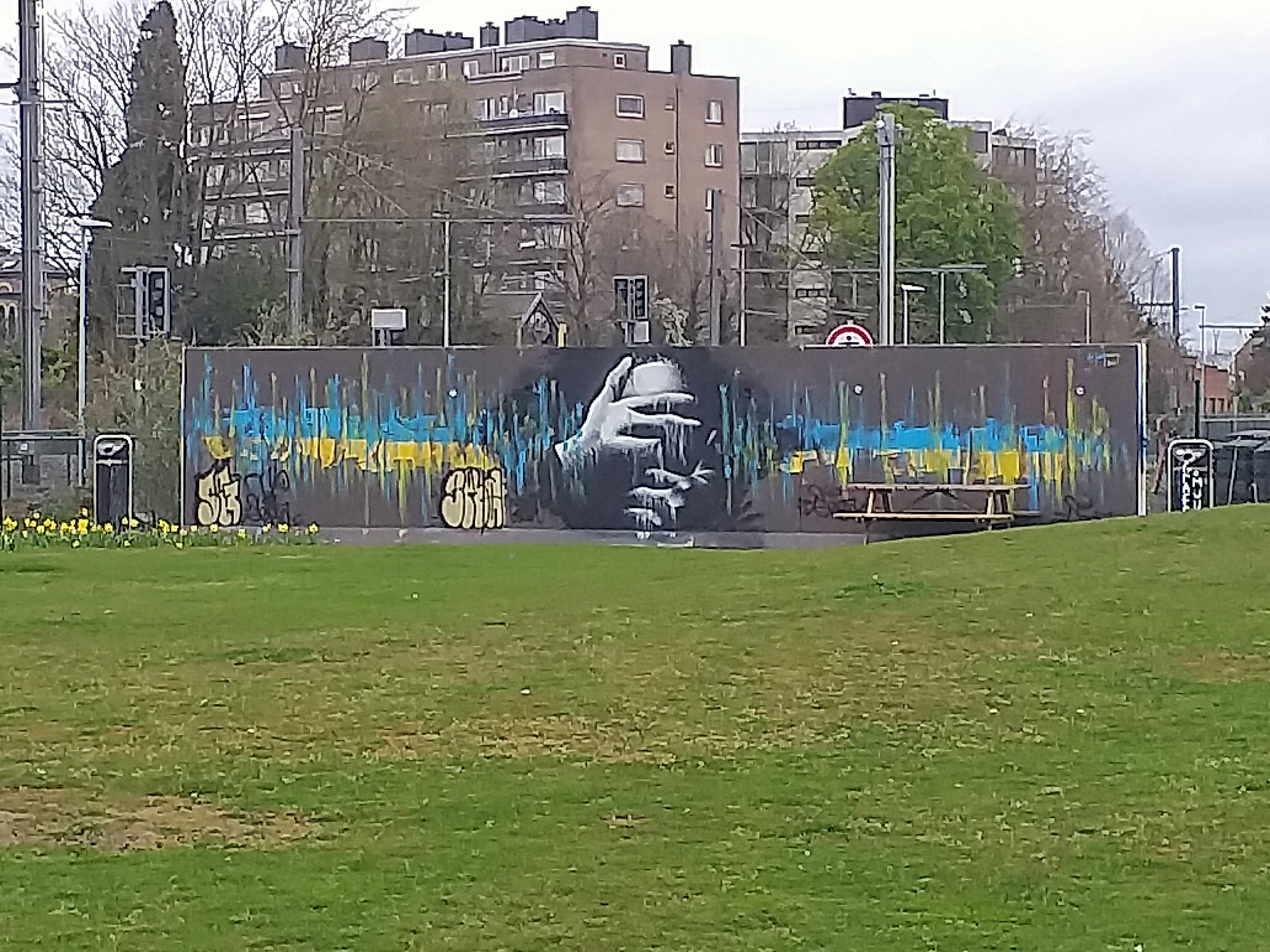 Deze mural is een duidelijk protest tegen de oorlog in Oekraïne, hoop ook dat deze snel voorbij is en er vrede in het land is. Hans