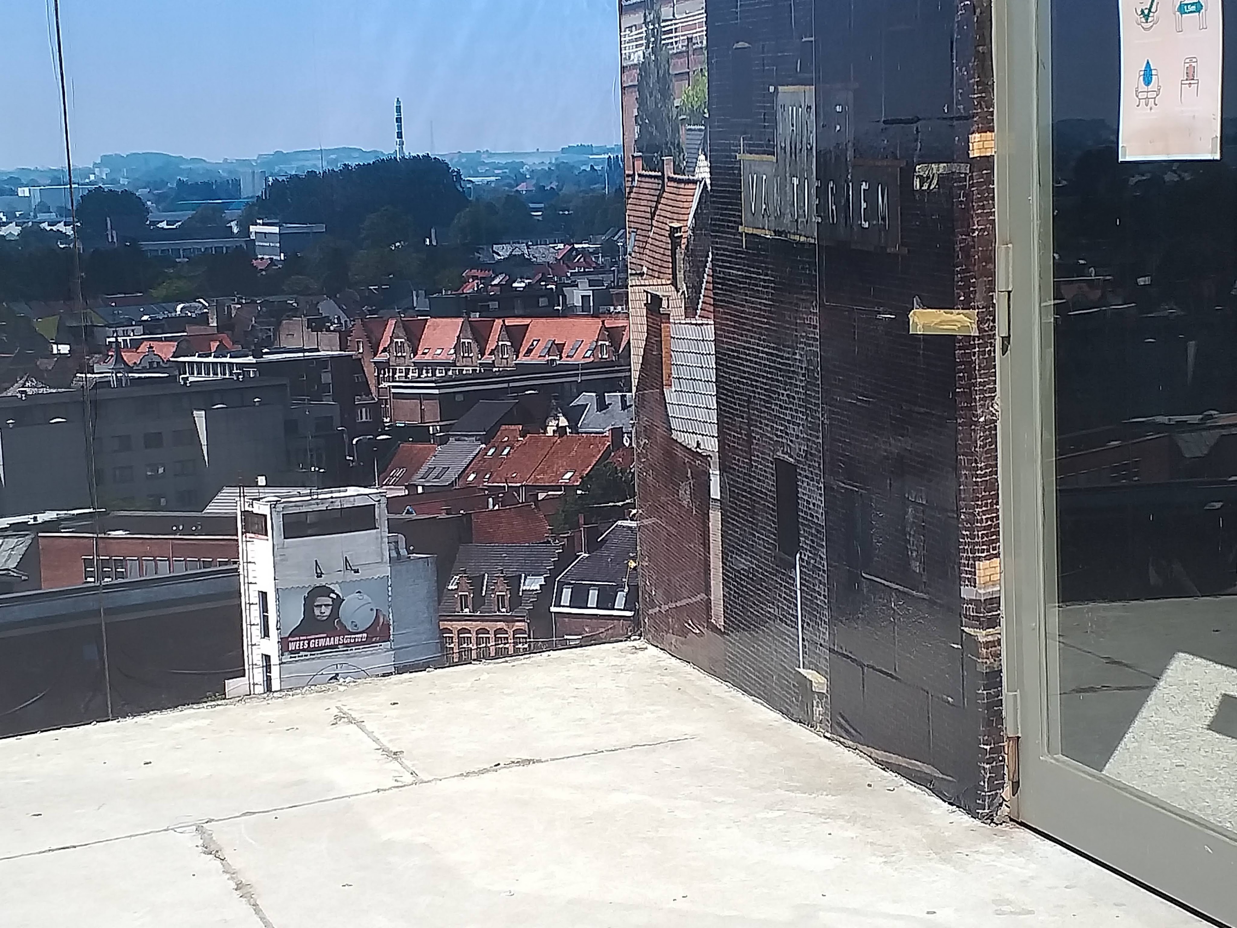 Even een blik werpen op de ingang/uitgang voor de gebruikers van de ondergrondse parking. Die is opgefleurd met foto’s van Roeselare. Dit geeft een mooi effect.