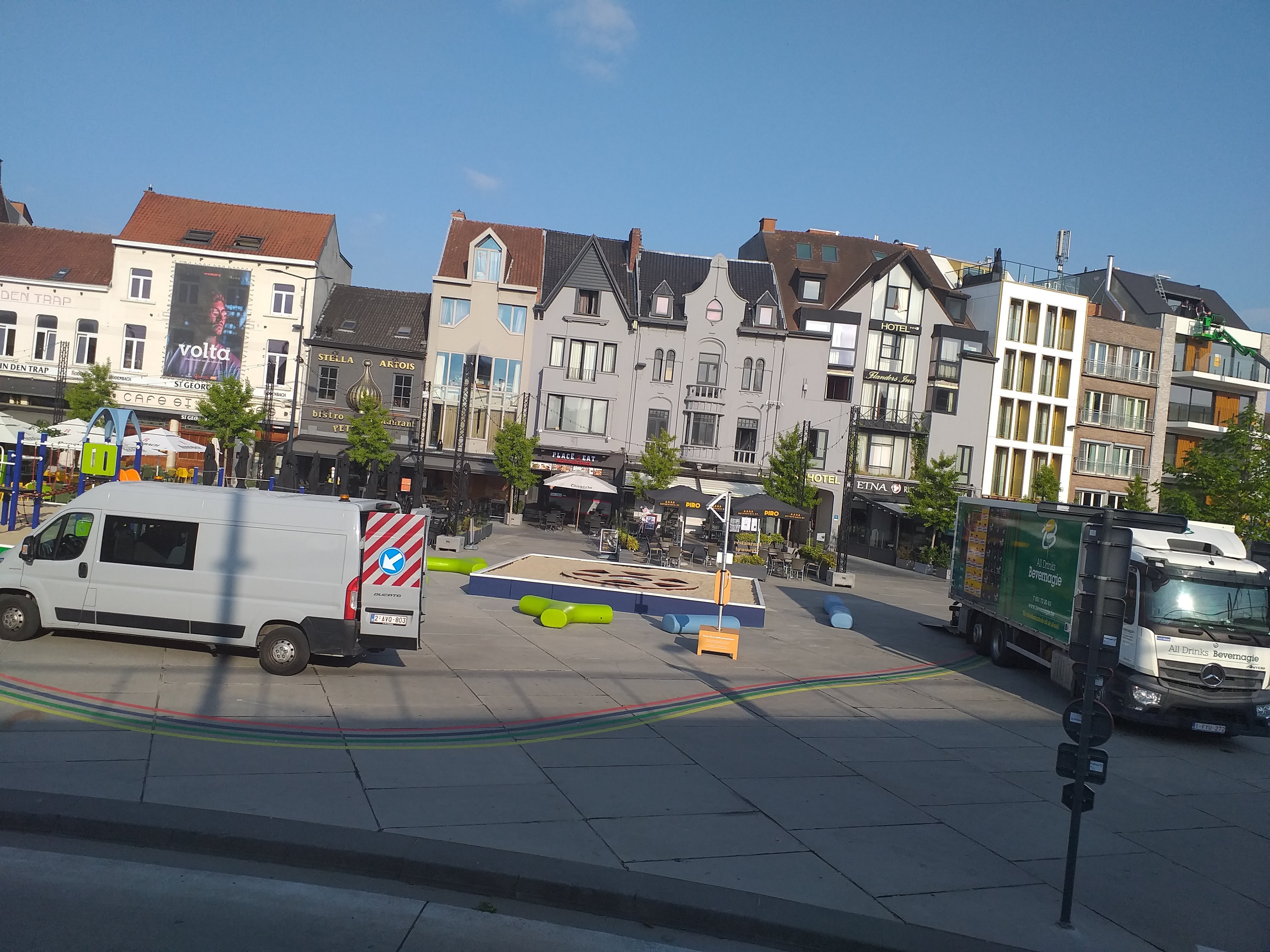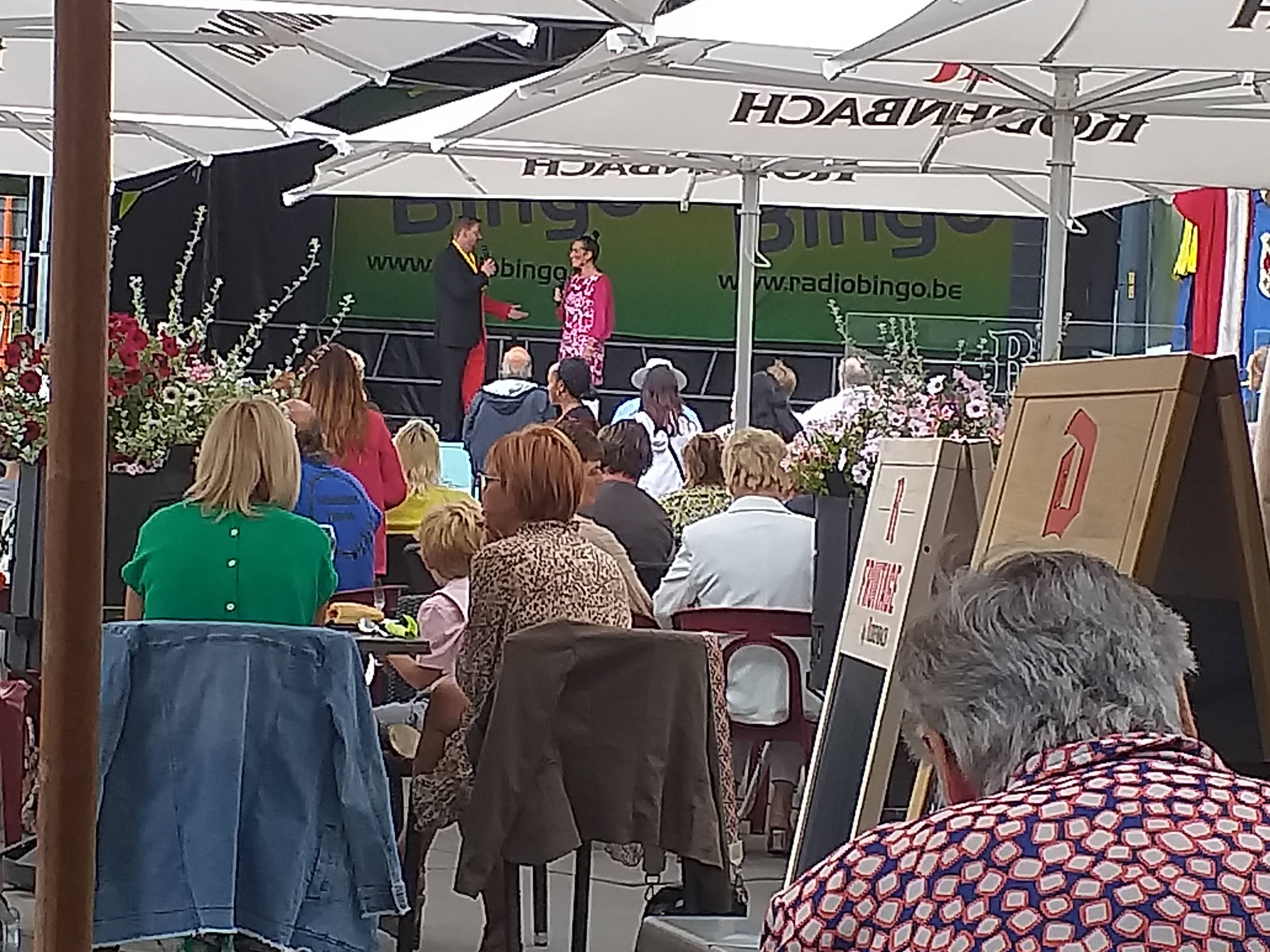Dat er op het stationsplein regelmatig iets te beleven valt weten jullie ondertussen wel. Zo waren er optredens op 21 juli, hier te lande bekend als de nationale feestdag. Zoals je misschien kunt zien was de presentator van dienst gekleed in de nationale driekleur : zwart, geel en rood.