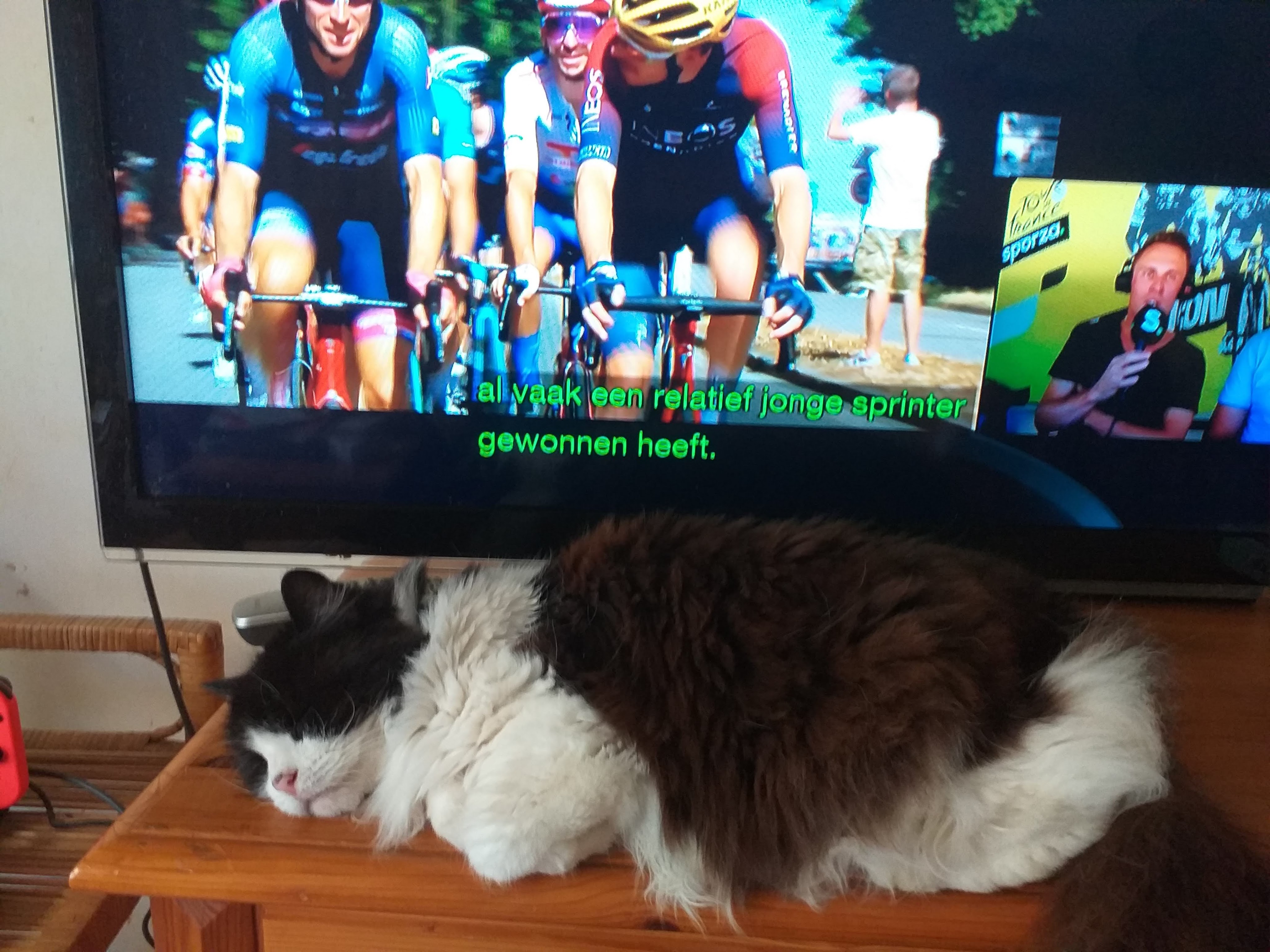 Gelukkig ondervinden de katten niet te veel last van de Sporzaterreur. Gelukkig hebben de niet sportliefhebbers wie weet genoeg kunnen opnemen tijdens het jaar om nu de magere tv-zomermaanden door te komen.