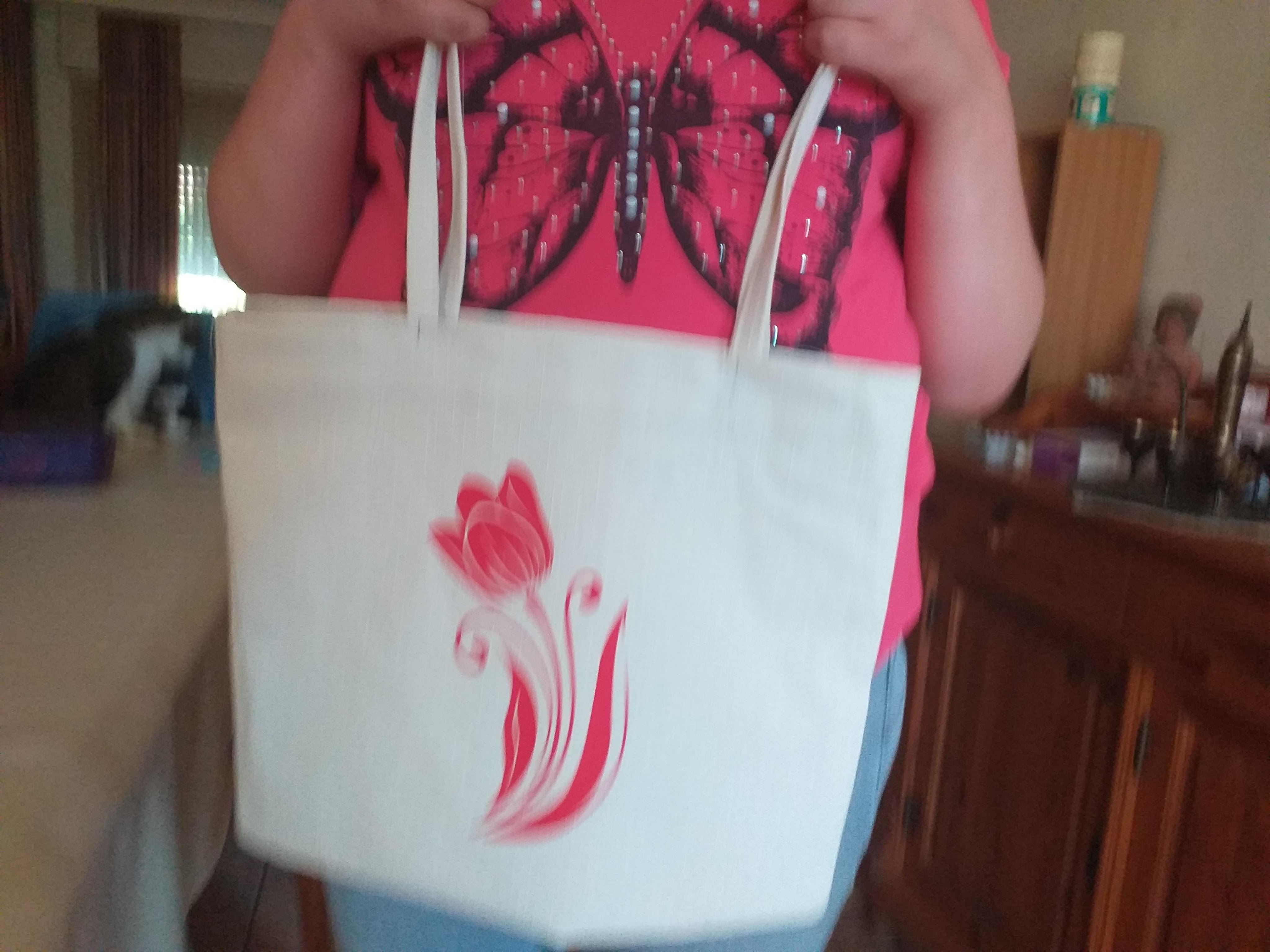 Gefeliciteerd met je moeder. Hopelijk had ze een leuke dag. Leuk die tas met tulp.