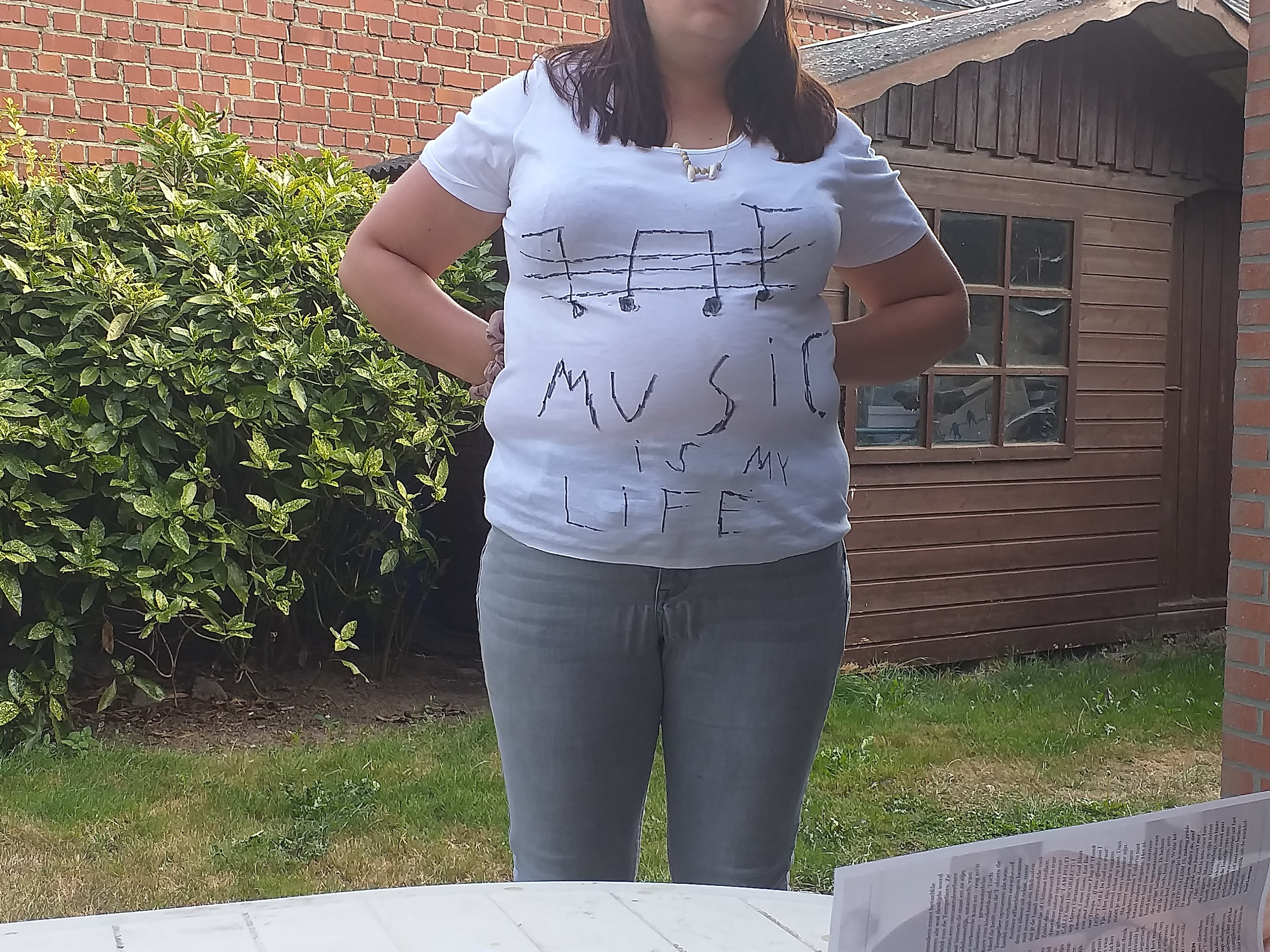 Ten slotte een foto van de door Eva beschilderde T-shirt. Geen twijfel dat het om de muziek gaat.