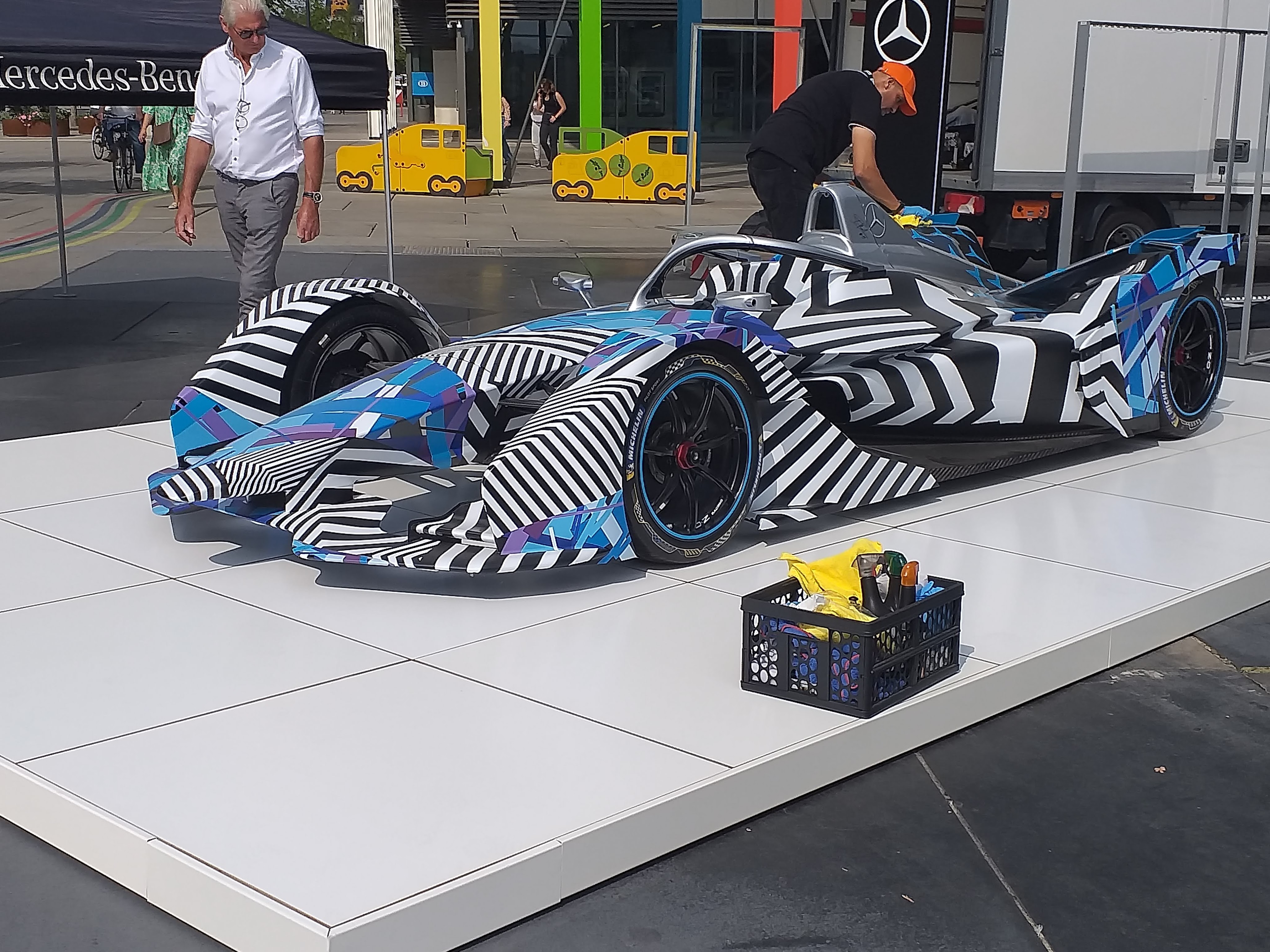 Het is een pracht racewagen, maar zonder gillende motor. Hans