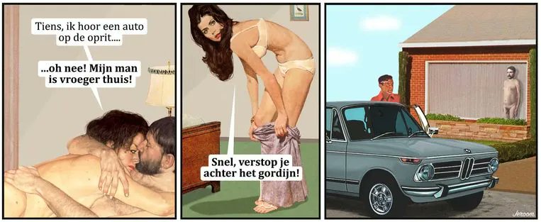 Moeder de vrouw zal het maar meemaken dat haar man vroeger thuis komt dan voorzien !