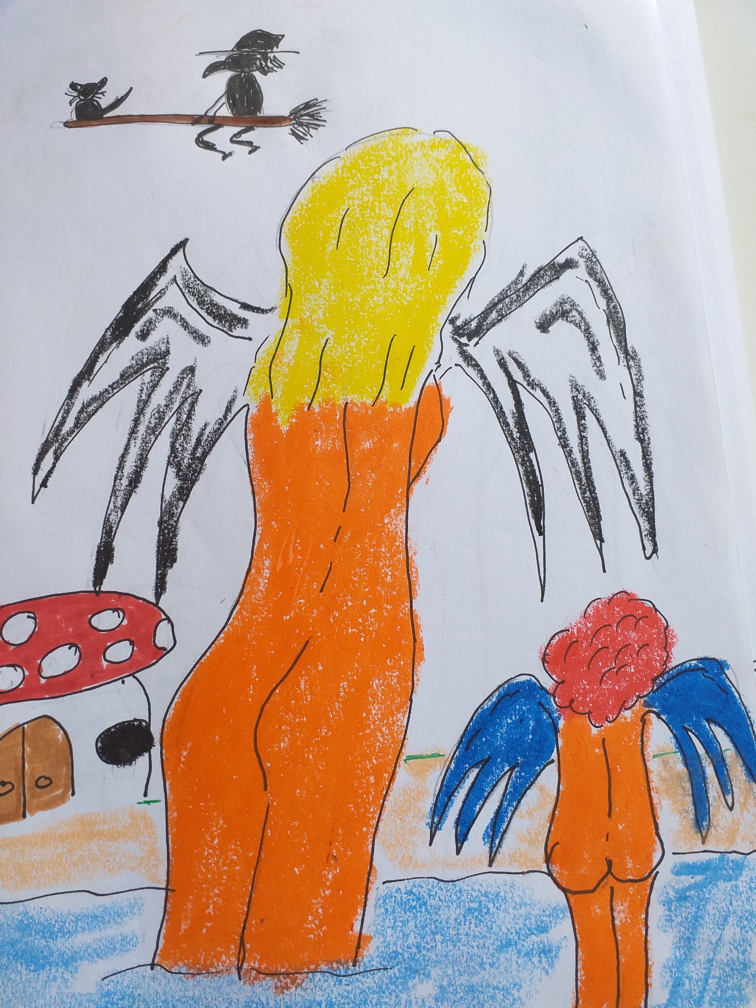 Lekker bezig geweest om tekenen. Leuk met engel vleugels eraan. Heks hangt in de lucht. Fijn weekend.