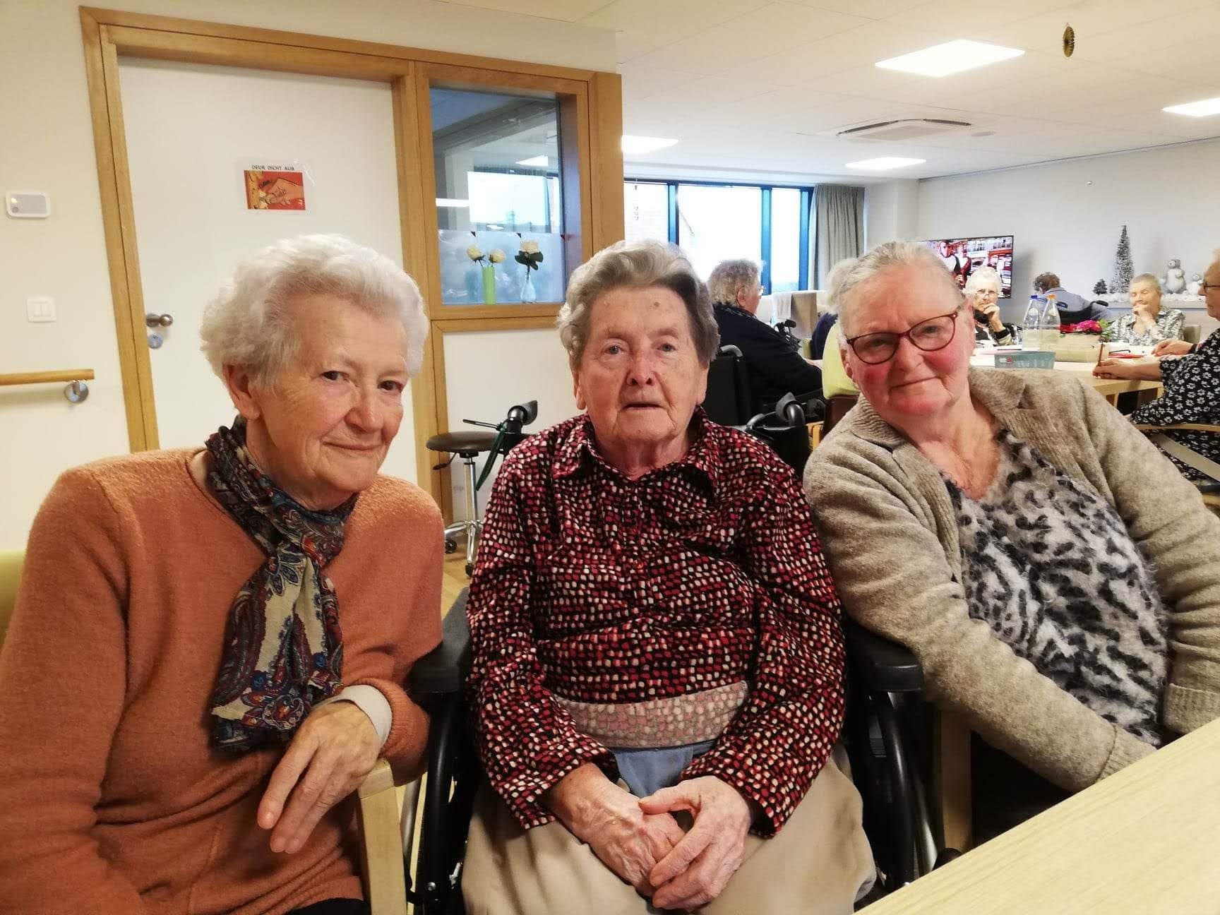 Een foto van mijn moeder wanneer ze twee vriendinnen uit Rumbeke op bezoek krijgt. Gelukkig herkende moeder de dames. Het was voor allen een leuk weerzien.