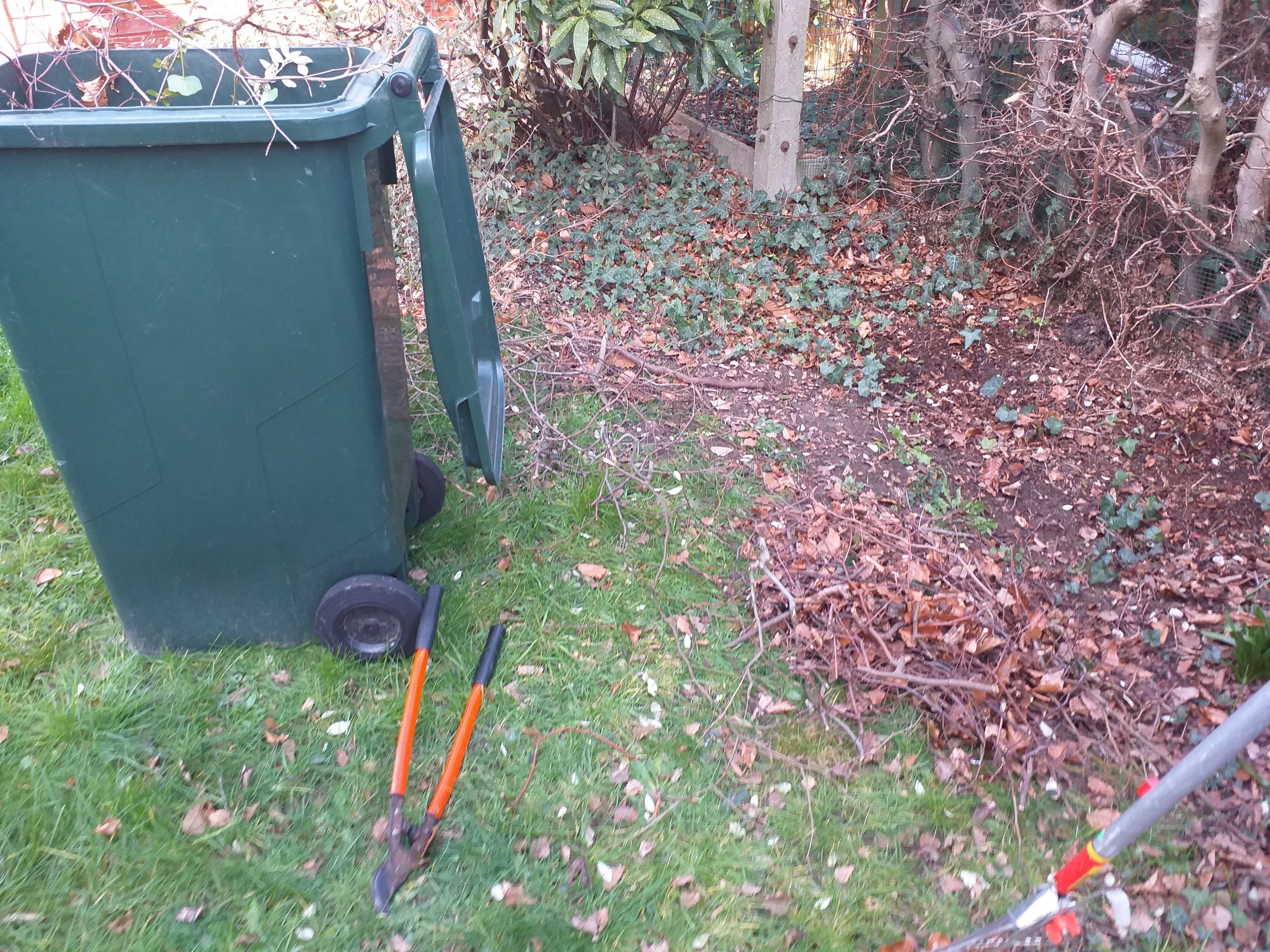 Hier hebben we ook al wat opgeruimd in de tuin… leuk met die zachte temperaturen.