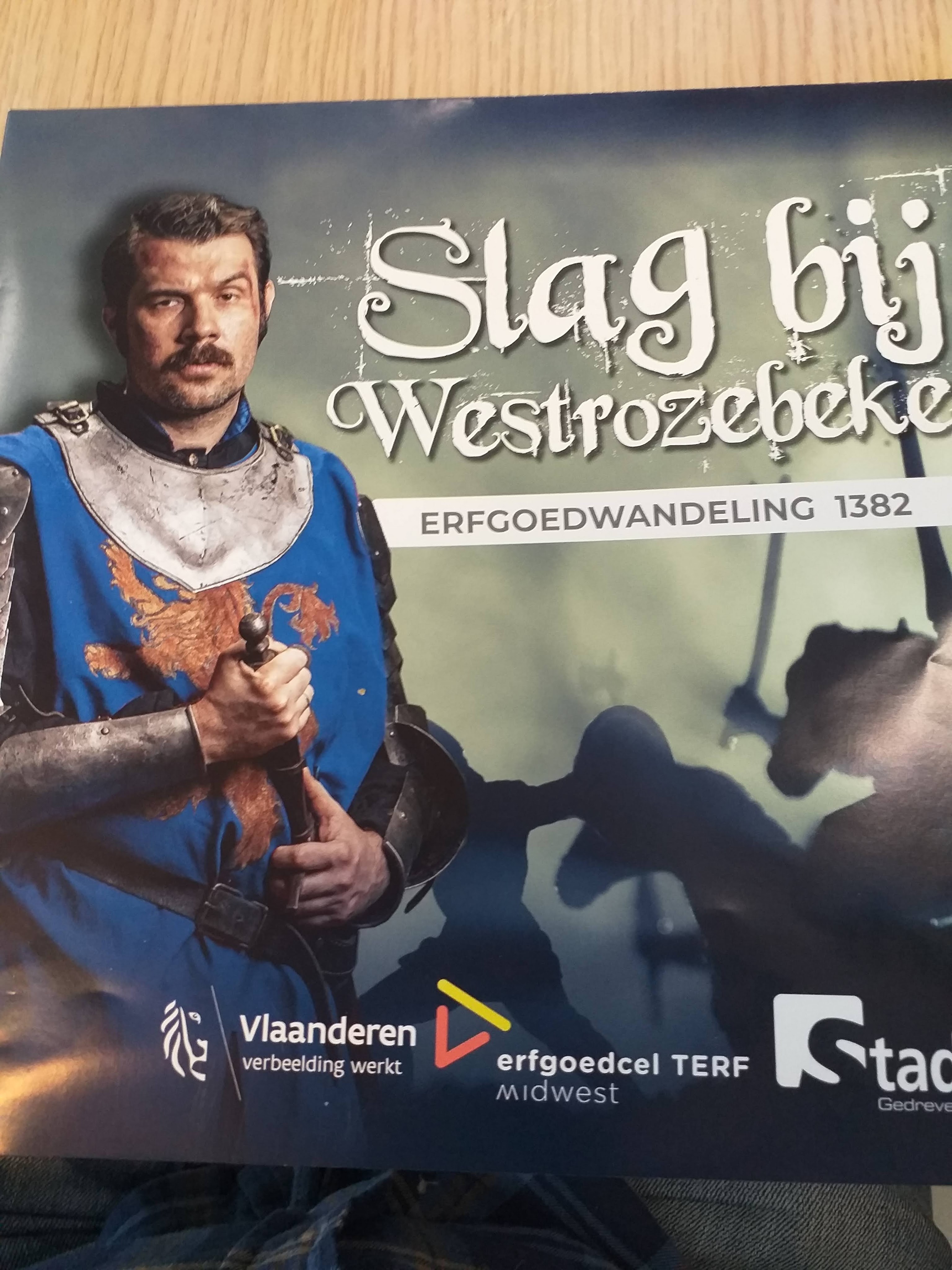Tenslotte een foto van een brochure die ik zag liggen in het woonzorgcenter waar mijn moeder verblijft. Het gaat over de slag van Westrozebeke in 1382. Je kan daar een route volgen in verband met die veldslag. Een idee als het weer wat beter is.