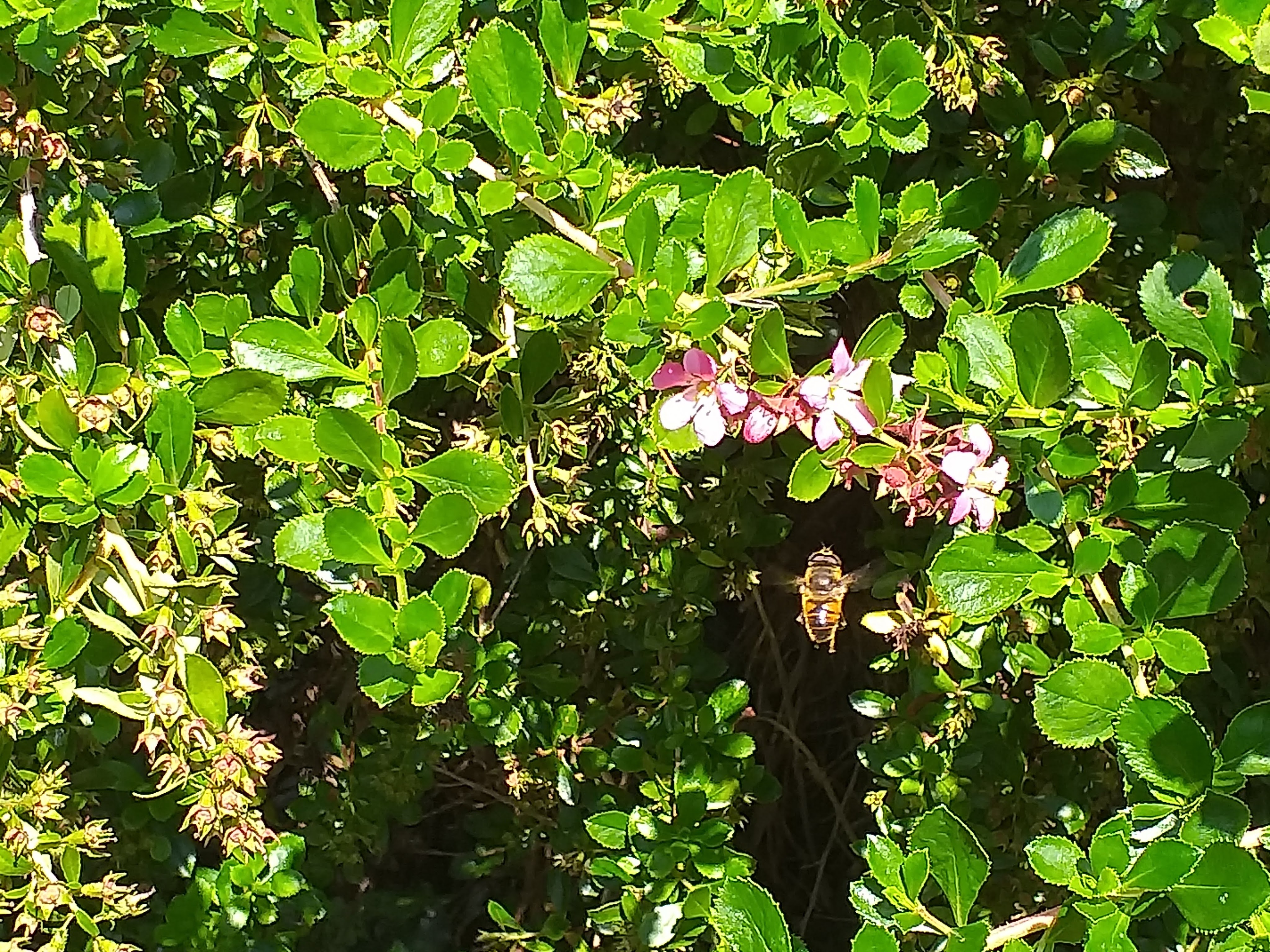 Is het momenteel geen echt zomers weer, daar trekt de natuur zich niets van aan. Integendeel, alles groeit en bloeit gelijk het een lieve lust is. Over groeien gesproken : voor het ogenblik laat ik de natuur haar werk doen in onze tuin. Dit wil zeggen dat ik weinig of niet gras maai en de lange takken van de bomen en struiken met rust laat. Gevolg is dat het er vol insecten zit. De bijen leven zich uit en hier en daar merk ik enkele vlinders.