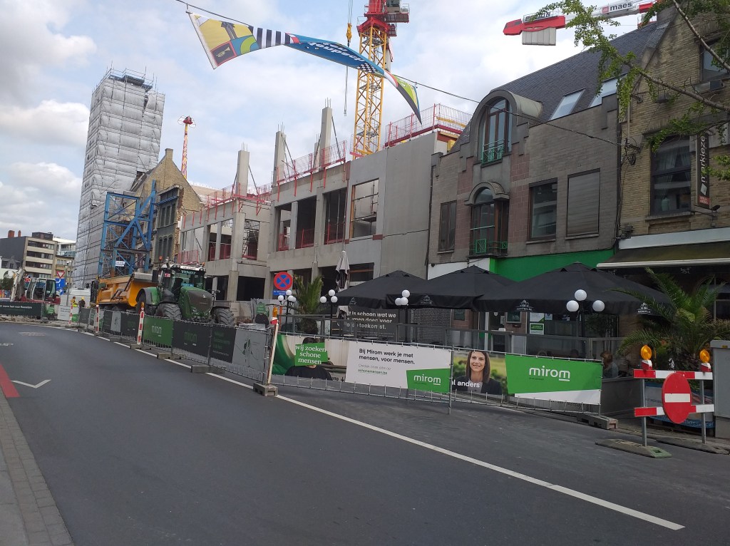 Naast het (nieuwe) stadhuis zijn ze druk bezig met werken zodat de straat deels afgesloten is.