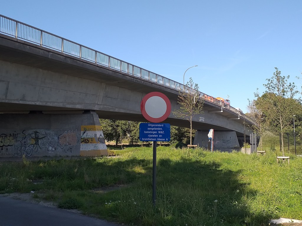 Ik ben er dinsdagavond even naartoe gefietst. Dichter dan wat je op de foto ziet kon ik niet. Dan maar even onder de brug gefietst. Dit kon dus nog wel.
