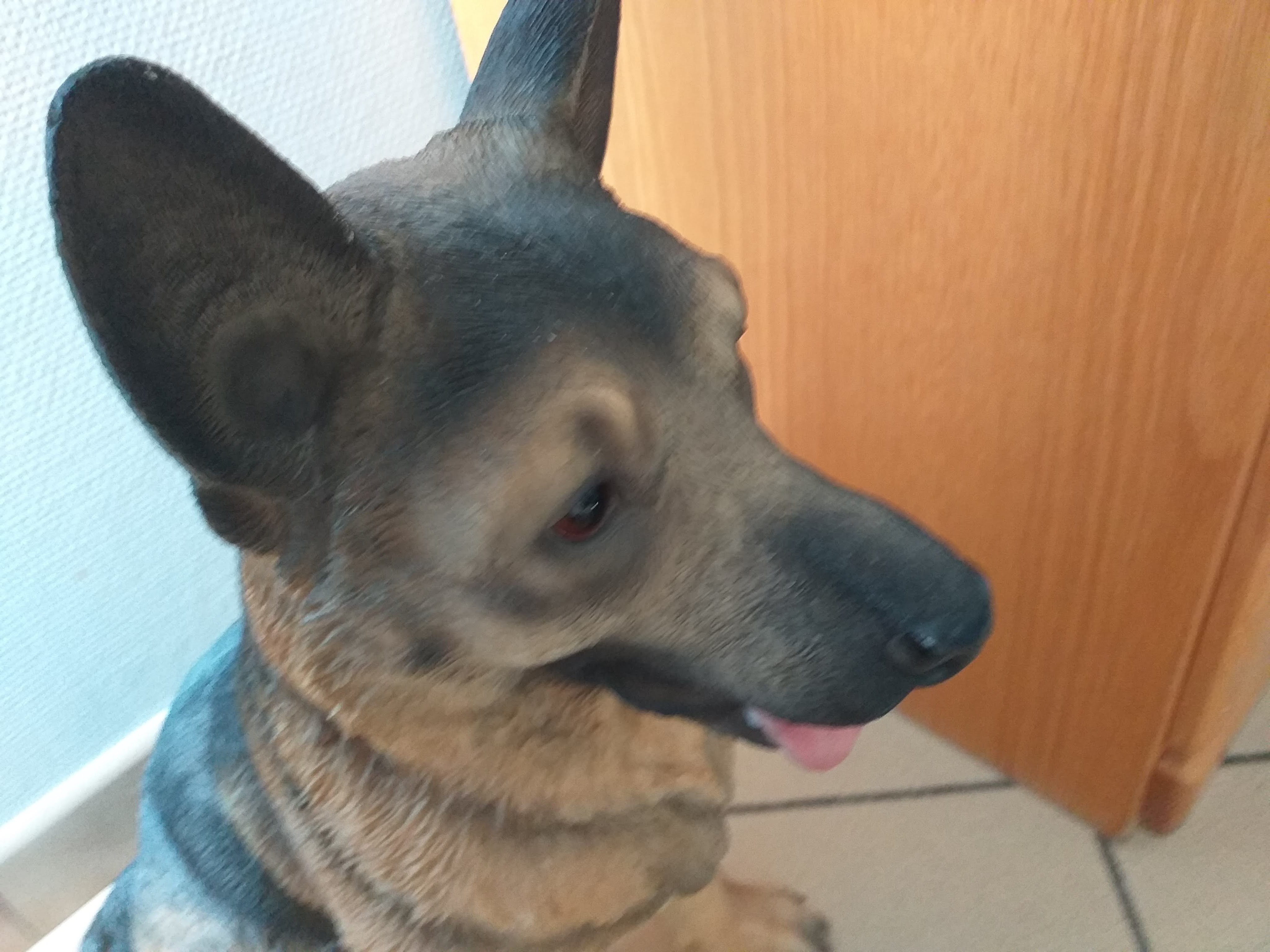 Vrijdagnamiddag ging ik even langs bij mij moeder in haar woonzorgcenter. Bij haar staat een beeld van een herdershond die lijkt op één van de honden die ze vroeger had. Blijkbaar is dat beeld tot leven gekomen. Moeder spreekt er regelmatig mee. Gelukkig bijt hij niet naar de andere bewoners en blaft hij niet veel.