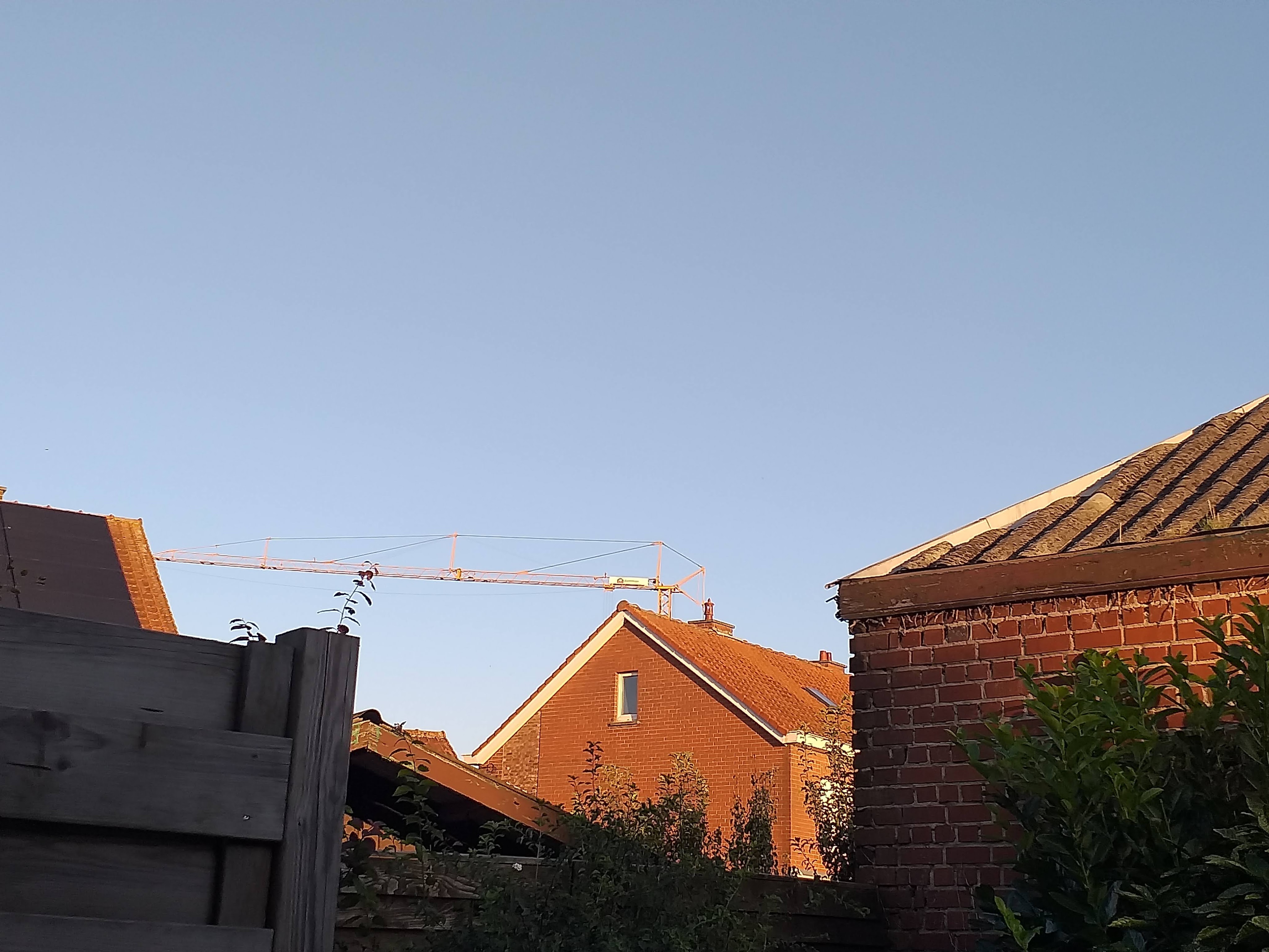 De foto nam ik zondag van op ons terras. In de buurt zijn ze druk bezig nieuwe sociale woningen te bouwen. Eerstdaags ga ik eens een kijkje nemen naar de werken.