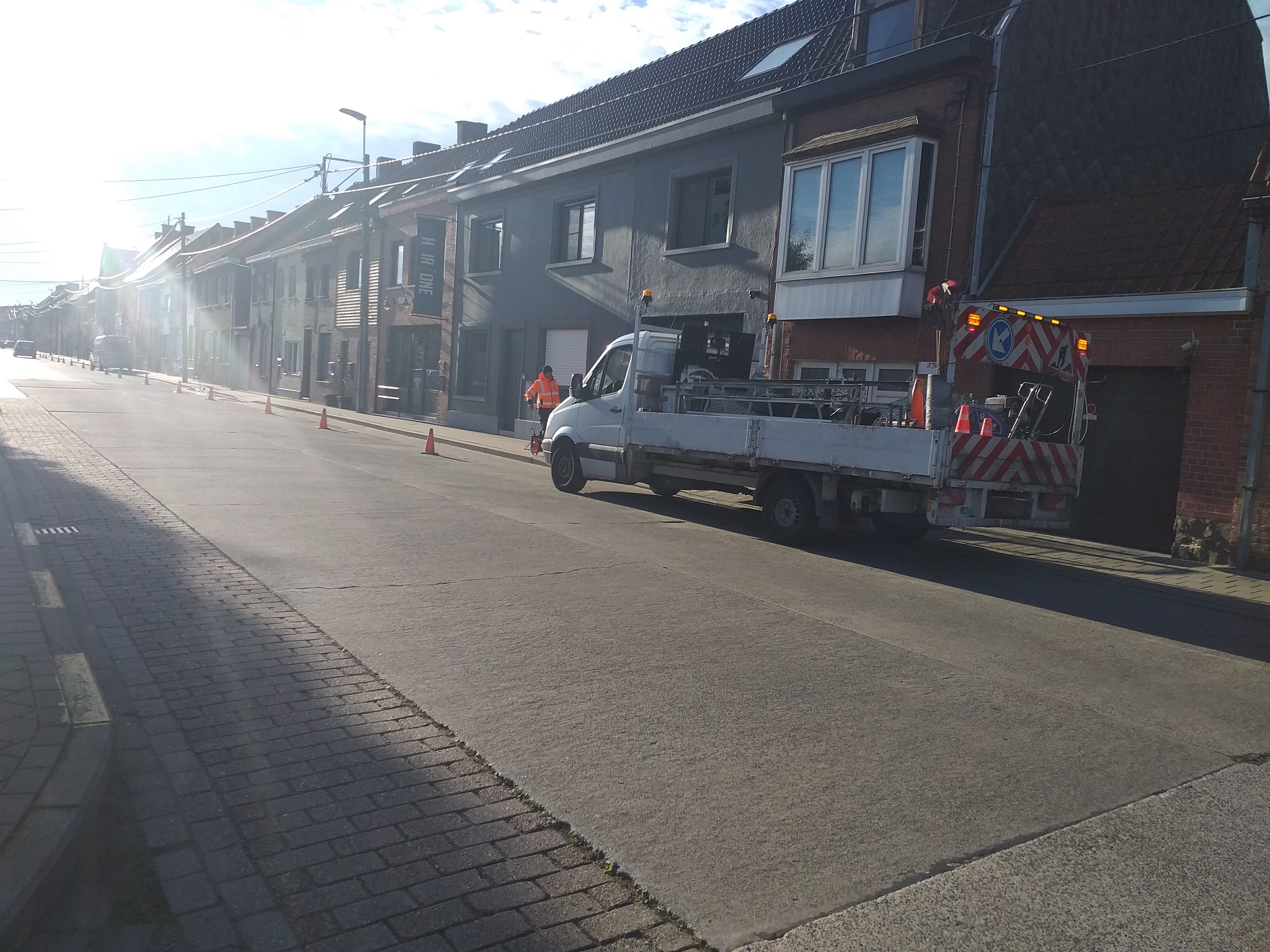 Maandag en gisteren dinsdag werden er werken uitgevoerd voor wat betreft het parkeren in de Vijfwegenstraat. Ik woon dus in een zijstraat van de Vijfwegenstraat.
