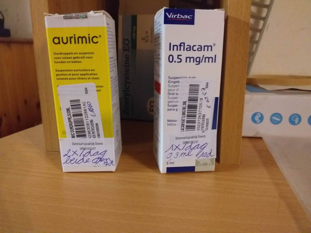 Ook heb ik een medicijn meegekregen voor haar oortjes. Die zitten vol vuil.