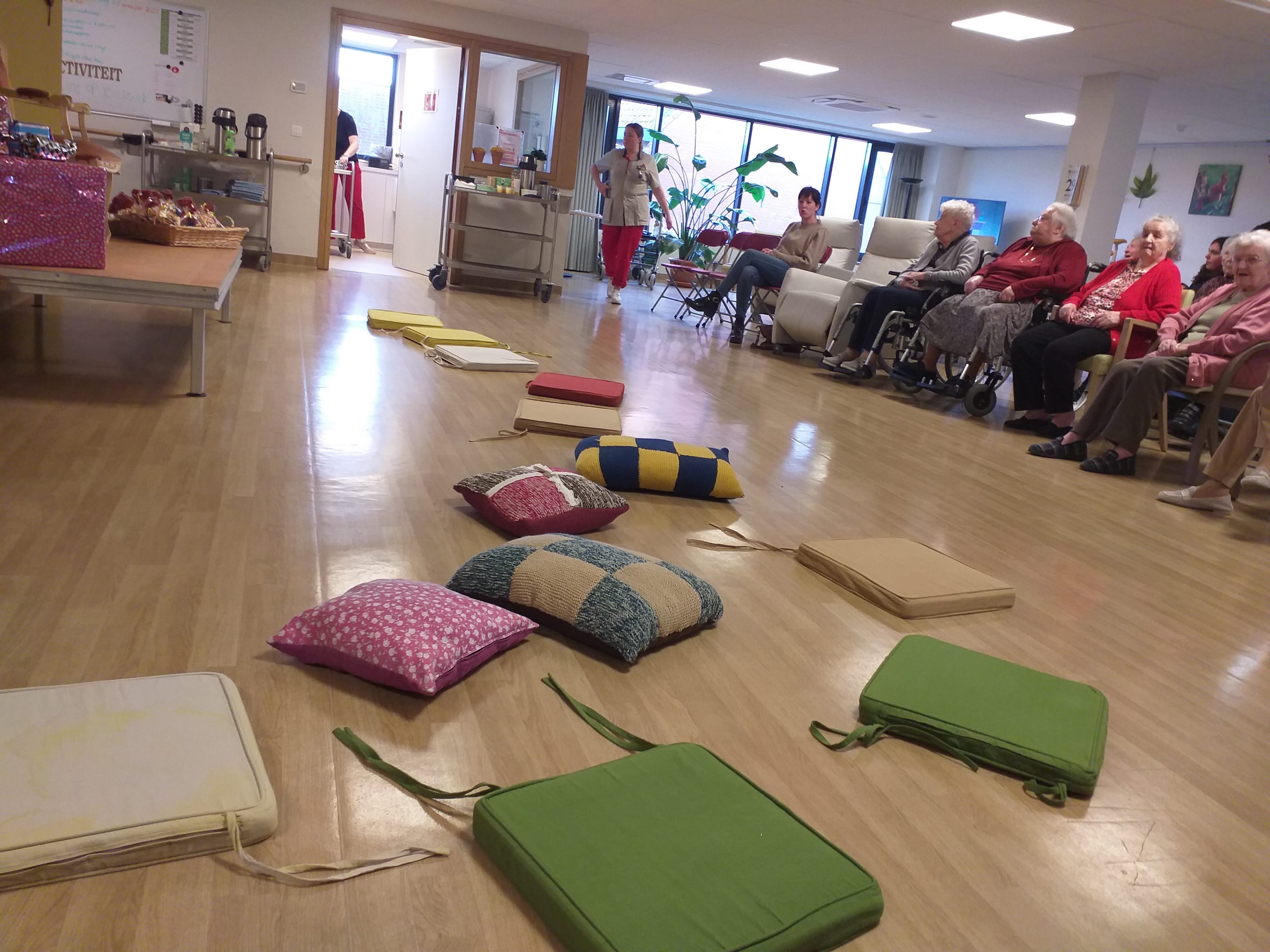 Samen gingen we naar de eetzaal. Niemand minder dan de Sint zou er op bezoek komen. Enkele inwoners zaten al klaar om de heilige man te ontvangen. Ook kwamen enkele familieleden met hun kleine kinderen de zaal binnen.