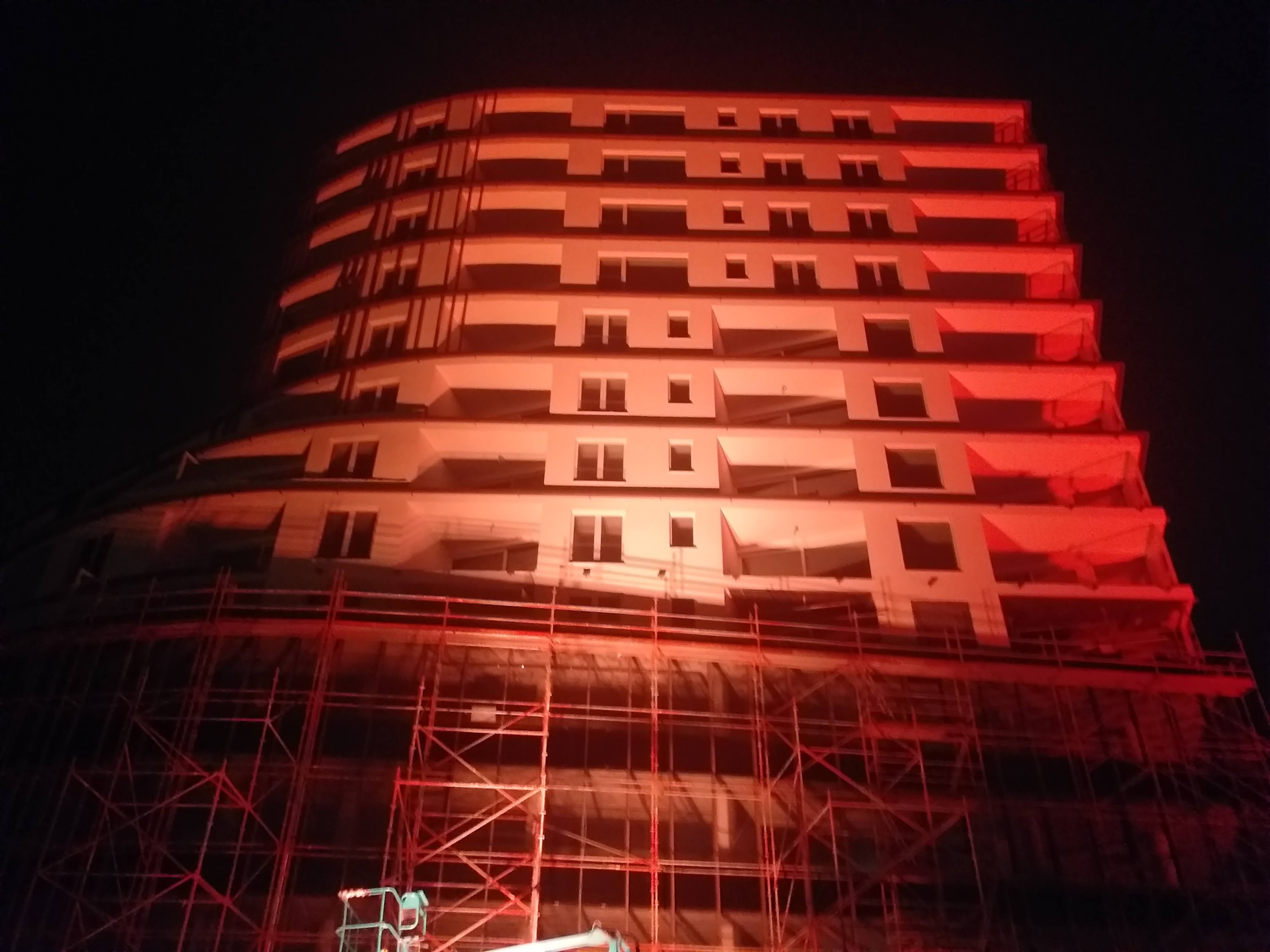 Het heeft wel iets zo’n mooi uitgelicht gebouw. En het is lang donker dus heb je er veel plezier van.