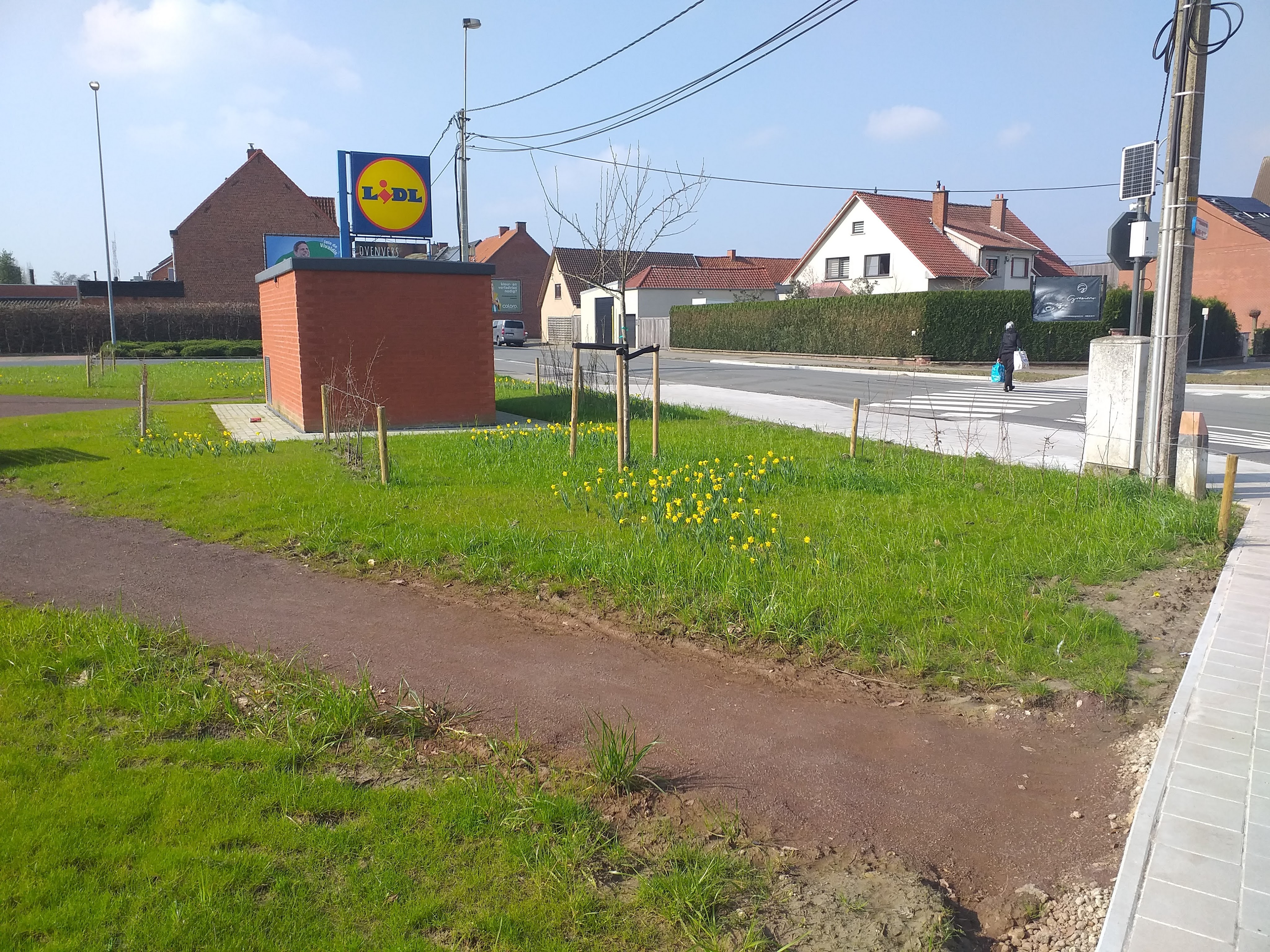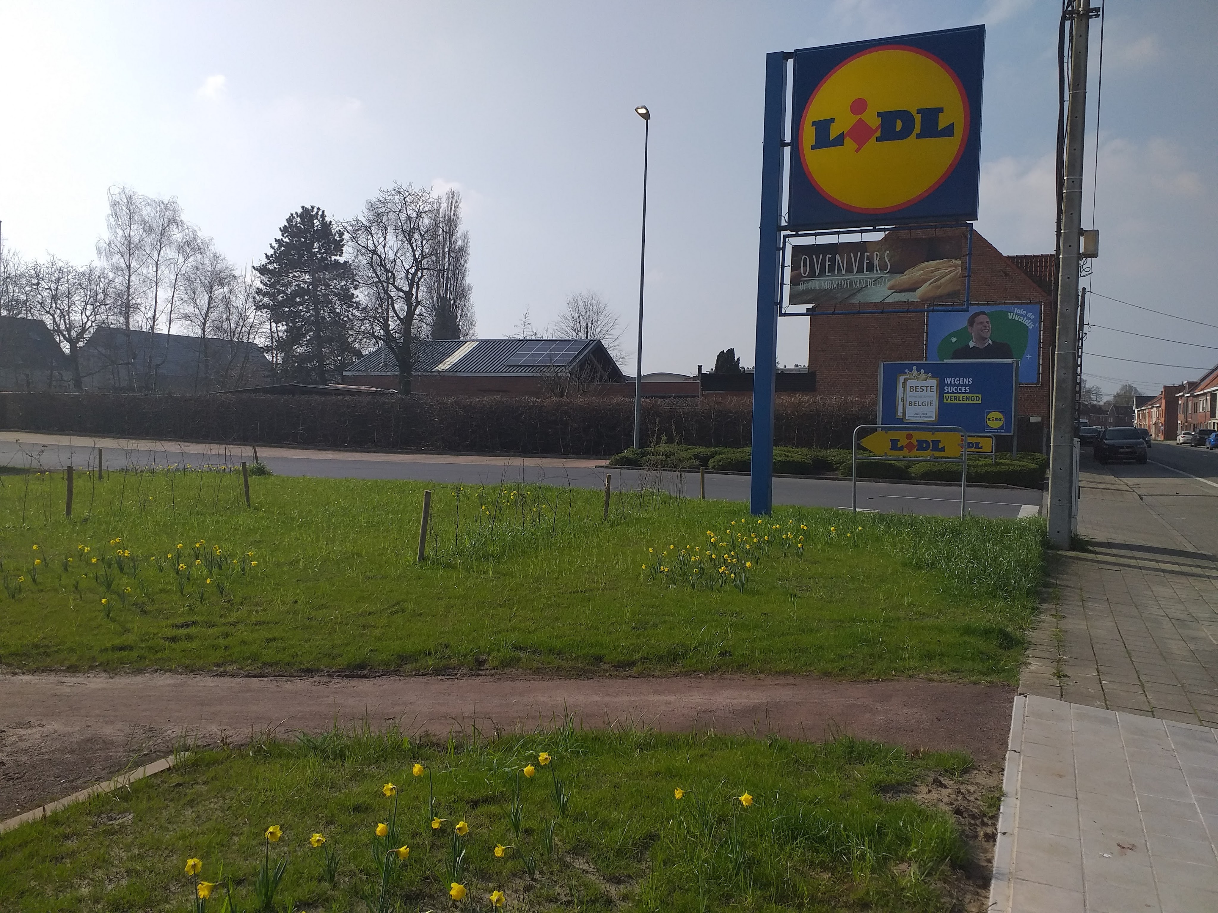 Naast de parking van de Lidl is er een parkje. Daar is veel gras en bloemen. Er zijn ook enkele bankjes geplaatst. Ik denk niet dat ik daar ga zitten relaxen. Doe ik liever thus op ons terras. Of even wandelen tot aan het Sterrebos. Dat is ook maar een boogscheut van waar wij wonen.