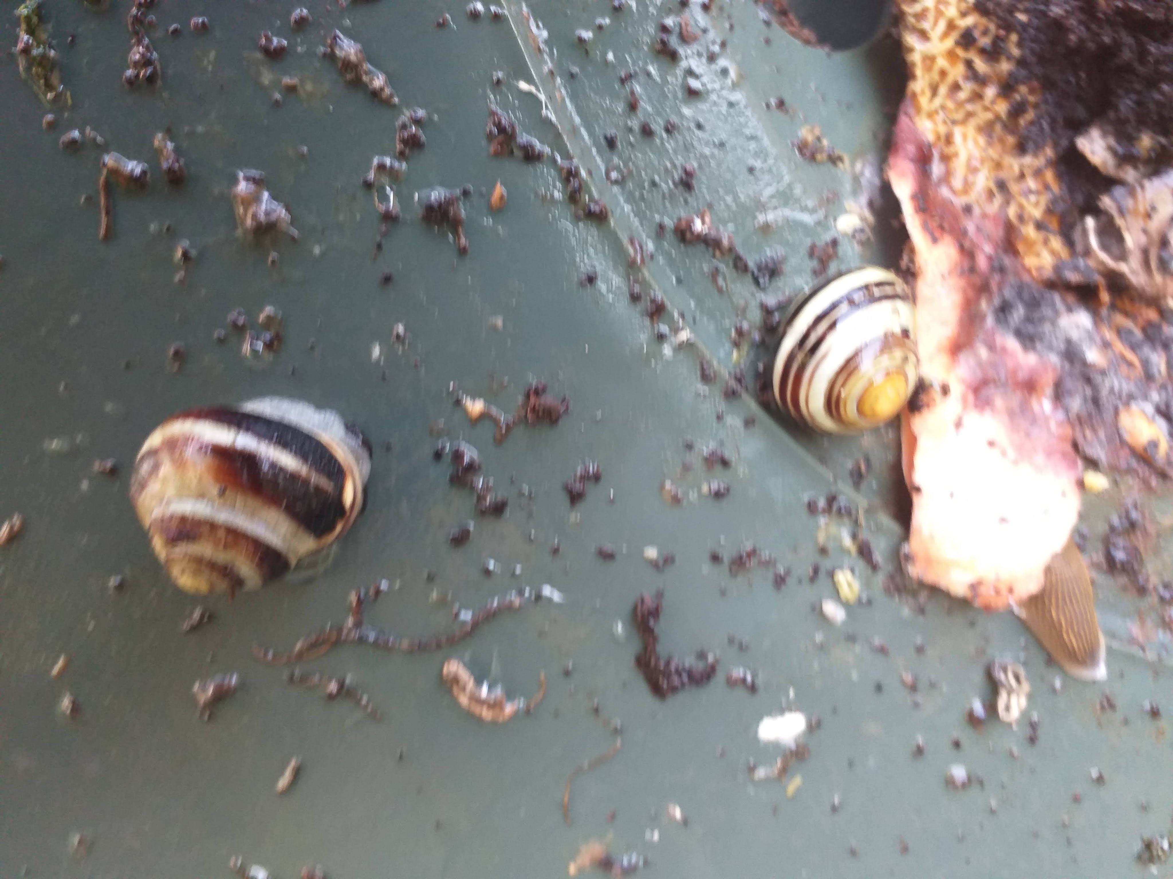 Het lijkt erop dat de huisjesslakken hun eigen plekje hebben gevonden in de compostbak. Hoewel het misschien onzeker is of dit gunstig is, kunnen ze helpen bij het afbreken van organisch materiaal. Rustplekje aan de vaart kan wat opfleuring gebruiken. Nieuwe buren in het verschiet, altijd spannend.