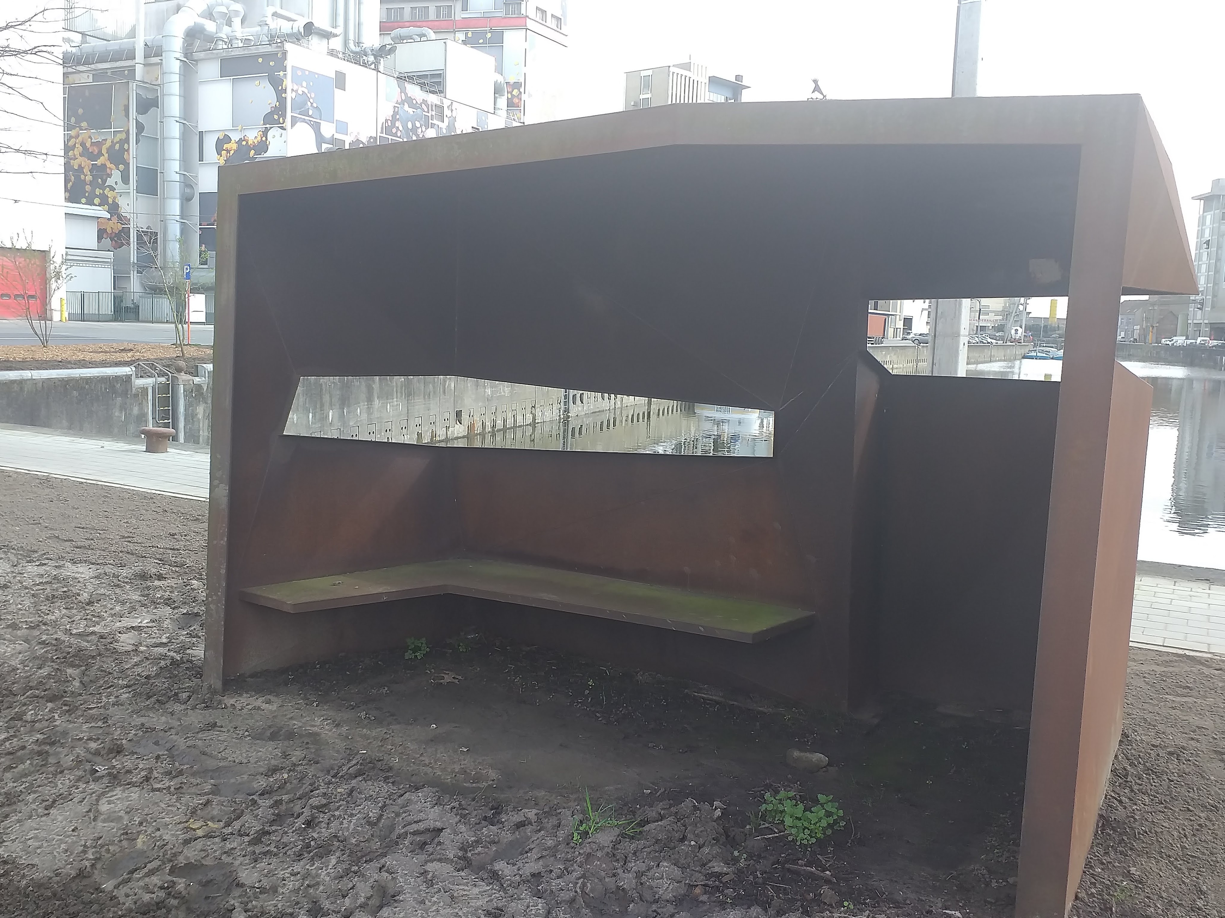 Dat lijkt me een duur rustplekje aan da vaart. Is dat niet gemaakt van cortenstaal?