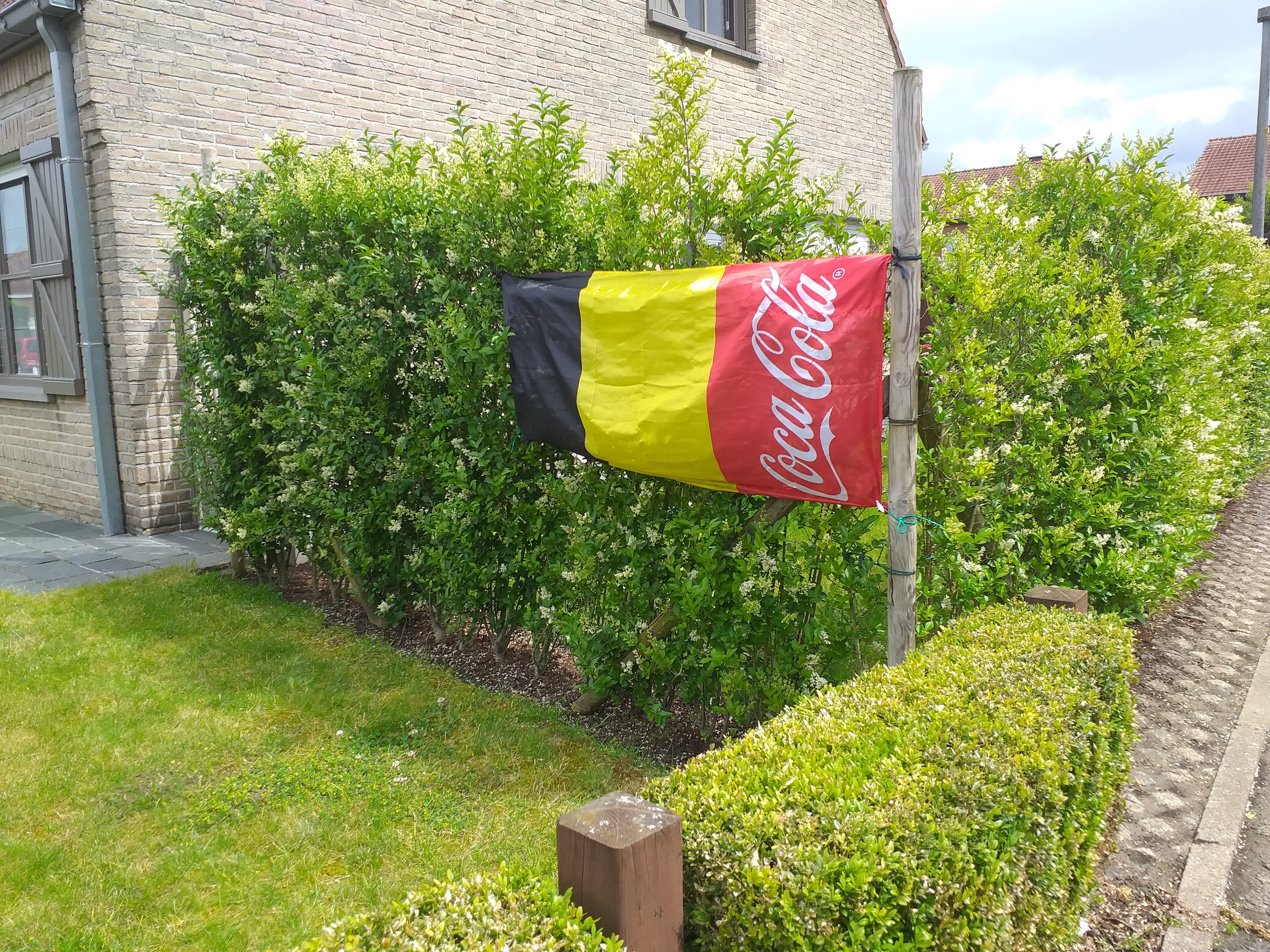 Maandag was een zonnige dag. Een geluk voor de Belgische supporters hier in Roeselare. Op het Polenplein was een groot scherm om daarmee te supporteren voor de Rode Duivels. Tegen wie ze zouden spelen ben ik alweer vergeten, maar ze zouden WINNEN ! Geen twijfel mogelijk.