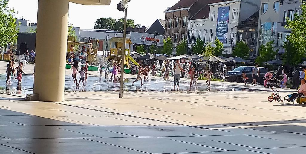 je ziet zulke fonteinen meer en meer op het stadsplein. Goed voor wat afkoeling voor de kinderen.