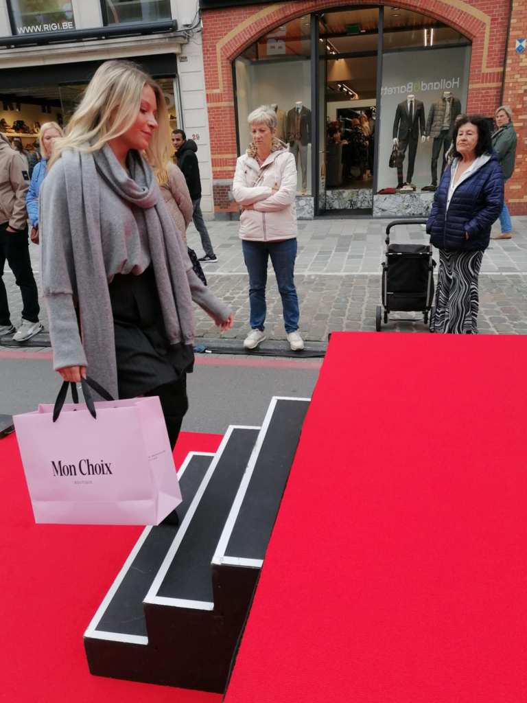 Die straat was afgesloten voor het verkeer daar er een catwalk zou plaatsvinden. Een catwalk georganiseerd door enkele winkels uit de straat.