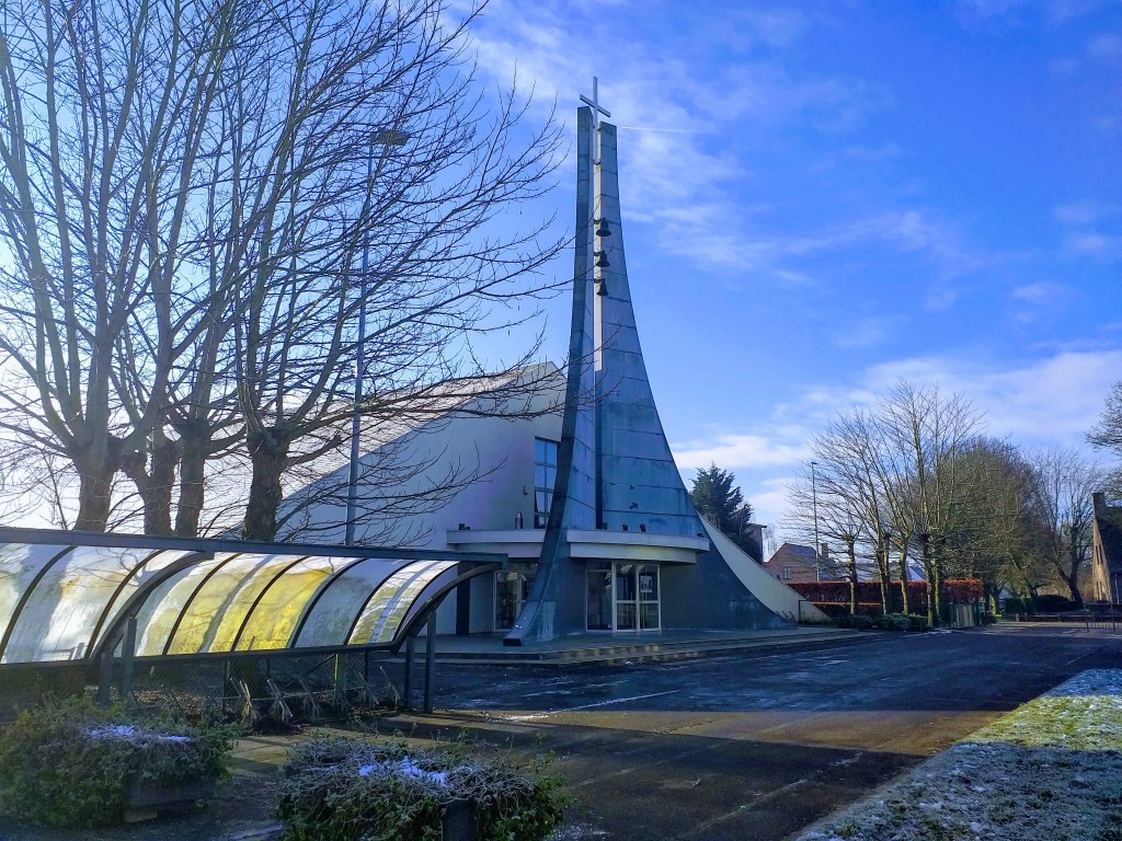 Een heel modern gebouw. Dergelijke kerken zijn er niet veel.