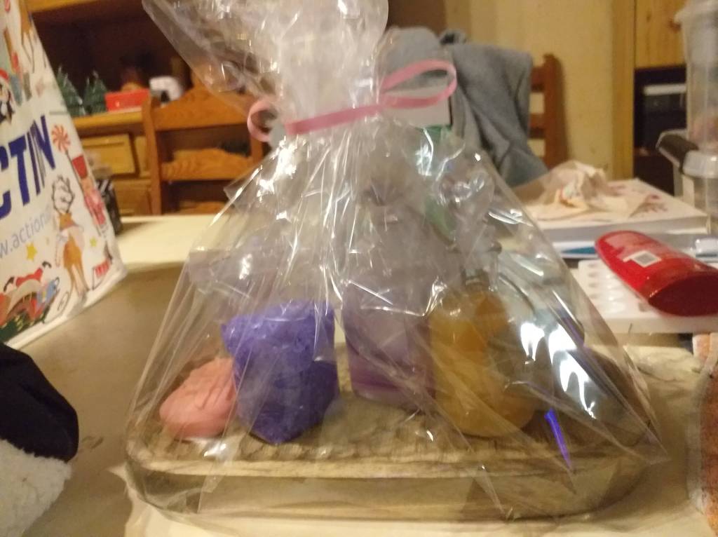 Uiteindelijk waren de zeepjes klaar en mooi ingepakt in plastiek. Eva had er genoeg van. We namen afscheid en vertrokken naar huis. Einde van een drukke zaterdagnamiddag.
