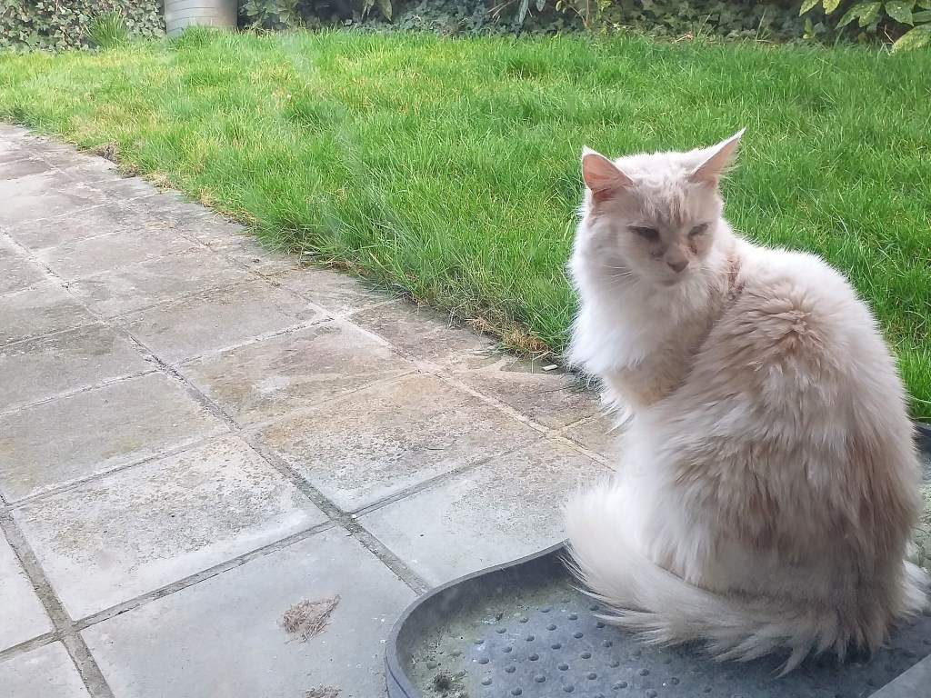 Wie er wel naar buiten kwam was niemand minder dan Kesha, het harige poesje van de buurvrouw. Tijden geleden dat ze nog eens langs kwam. Ze woont bij onze buren al van toen die hier kwamen wonen. Dat moet als ik het me goed herinner in 2016 geweest zijn. Kesha is geen jong beestje meer en volgens buurvrouw begint men het te merken. Toch oppassen want haar klauwen zijn zeer scherp en met dat poesje weet je maar nooit.