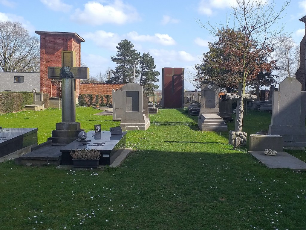 Nadat ik zondagnamiddag langs geweest was bij mijn moeder in haar WZC ging ik niet direct naar huis. Ik besloot om eens naar het nabij gelegen kerkhof te wandelen. Ik kom er nu al enkele jaren langs, maar had nog het nog nooit betreden. Het was zonnig weer, dus was dit het geschikte moment.