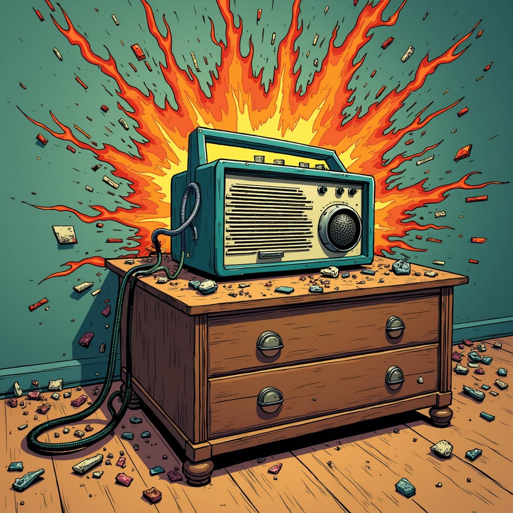 De vlammen komen uit de radio 🙂 maar toch niet met deze muziek 😉