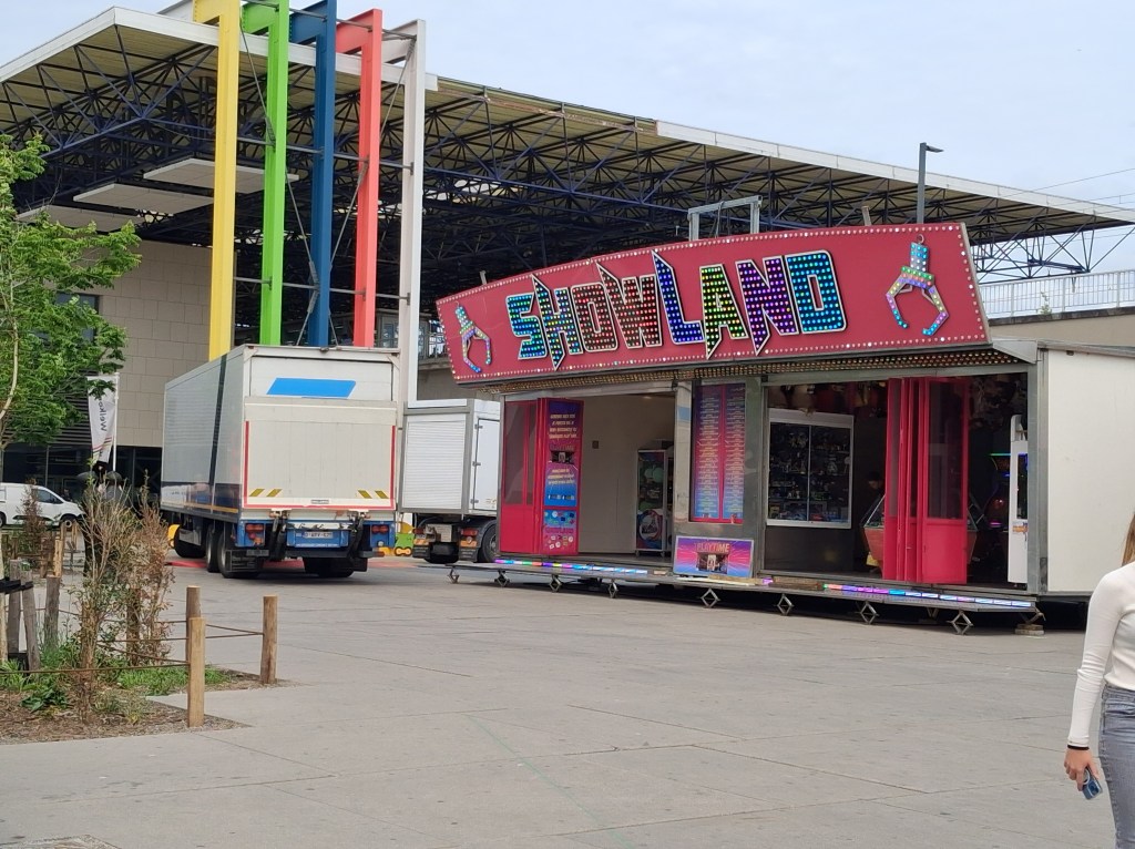 Achteraf enkele boodschappen voor onszelf in de halal supermarkt aan het stationsplein waar dit weekend de jaarlijkse Sinksenkermis zal plaatsvinden. Niet dat ik van plan ben naar de kermis te trekken. Toch leuk om even een foto te nemen van een attraktie.